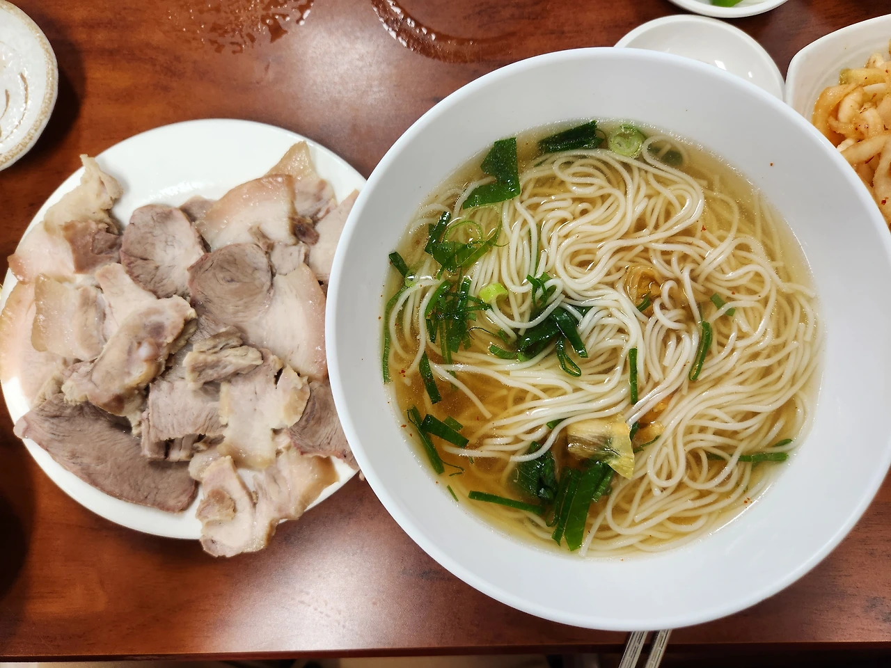 1인 돼지수육에 국수. 그게 이곳의 메뉴로 끝이었다. 다행이라면 국수에 열무국수가 하나 더 있는 정도. 당시 수육 한 접시가 5천 원, 국수가 2천 원을 했던 기억이다. 수육은 부드러웠고 국수는 돼지고기를 베이스로 한 육수의 느끼하지 않고 담백한 맛이었다. 거기에 소주 한 병을 추가해 야근을 마치고 간단히 한잔하고 집으로 돌아가는 코스로 제격인 집이었다.