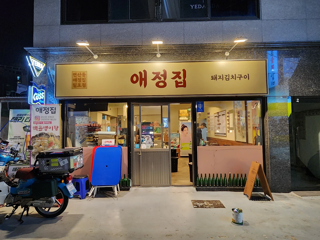 제목 그대로다. 부산에서, 동해 자연산 백골뱅이를? 그것도 탕으로? 와! 하고 놀랐다. 2차로 딱 제격인 이곳, 부산 연산동 애정집은 부산시청 뒤 뜻밖의 골목에 위치했다. 이런 곳에 가게가 있네? 싶은 곳에 마치 일본의 골목에서나 만나봄직한 애정스런 포스로 떡하니 자릴 잡았다.