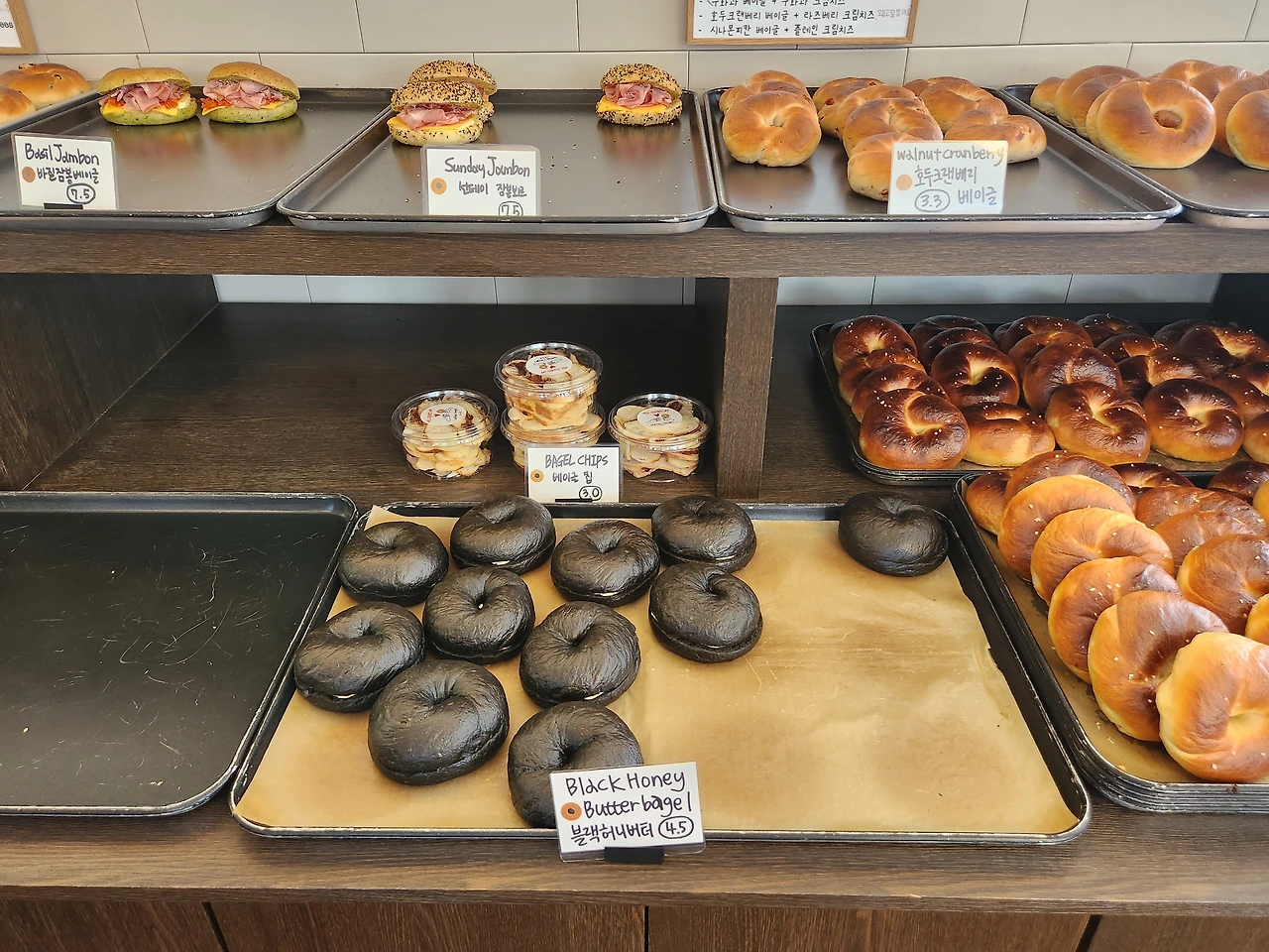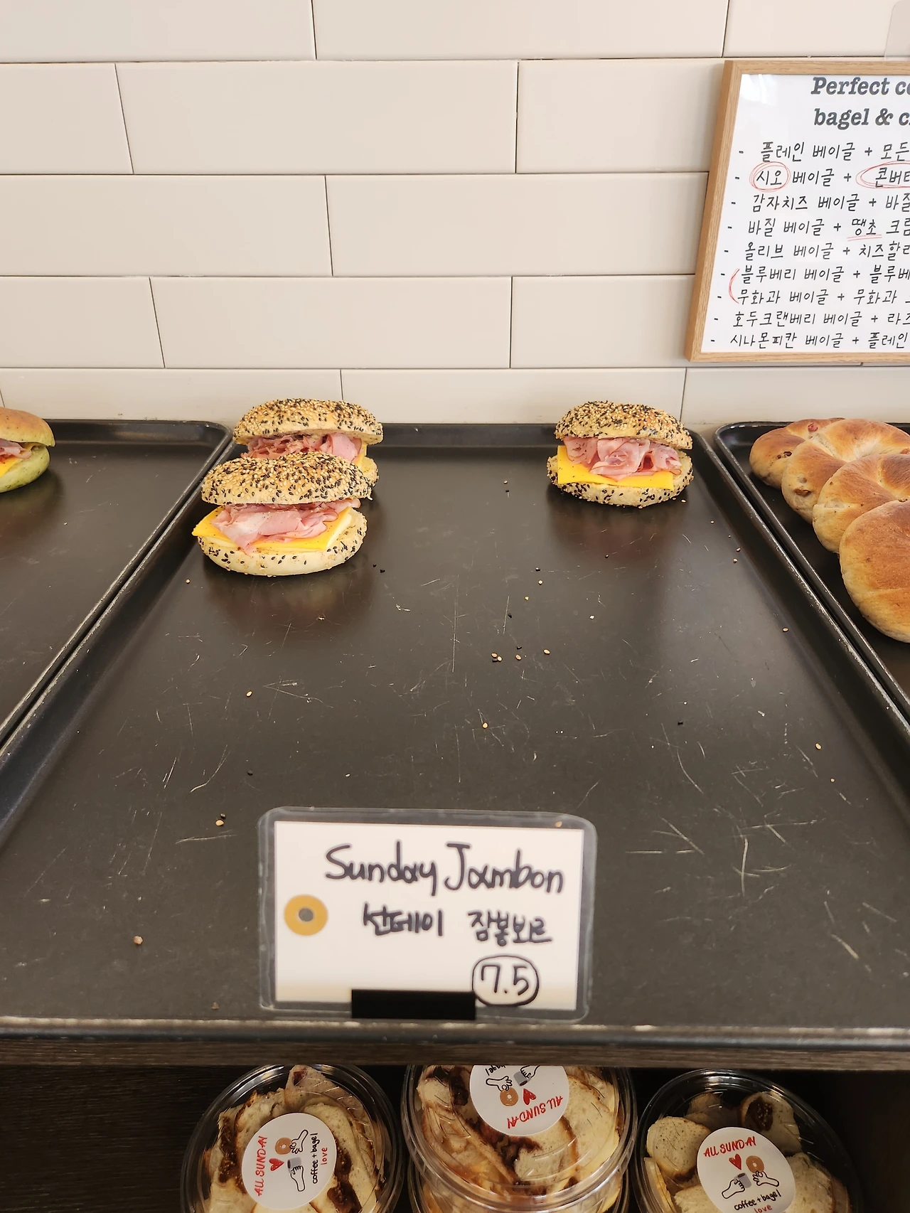 아니 베이글은 한 종류인 거 아니었던가? 이런 무지함을 과감히 깨 부셔준 곳이 바로 이 올선데이다. 갖가지 베이글들이 전시장처럼 전시되어 있고 이렇게나 많은 베이글들이 금세 사라지며 다시 그 자리를 채운다. 대체 이 많은 베이글들을 맛있게 먹고 싸가는 이분들, 정체가 뭐야.
