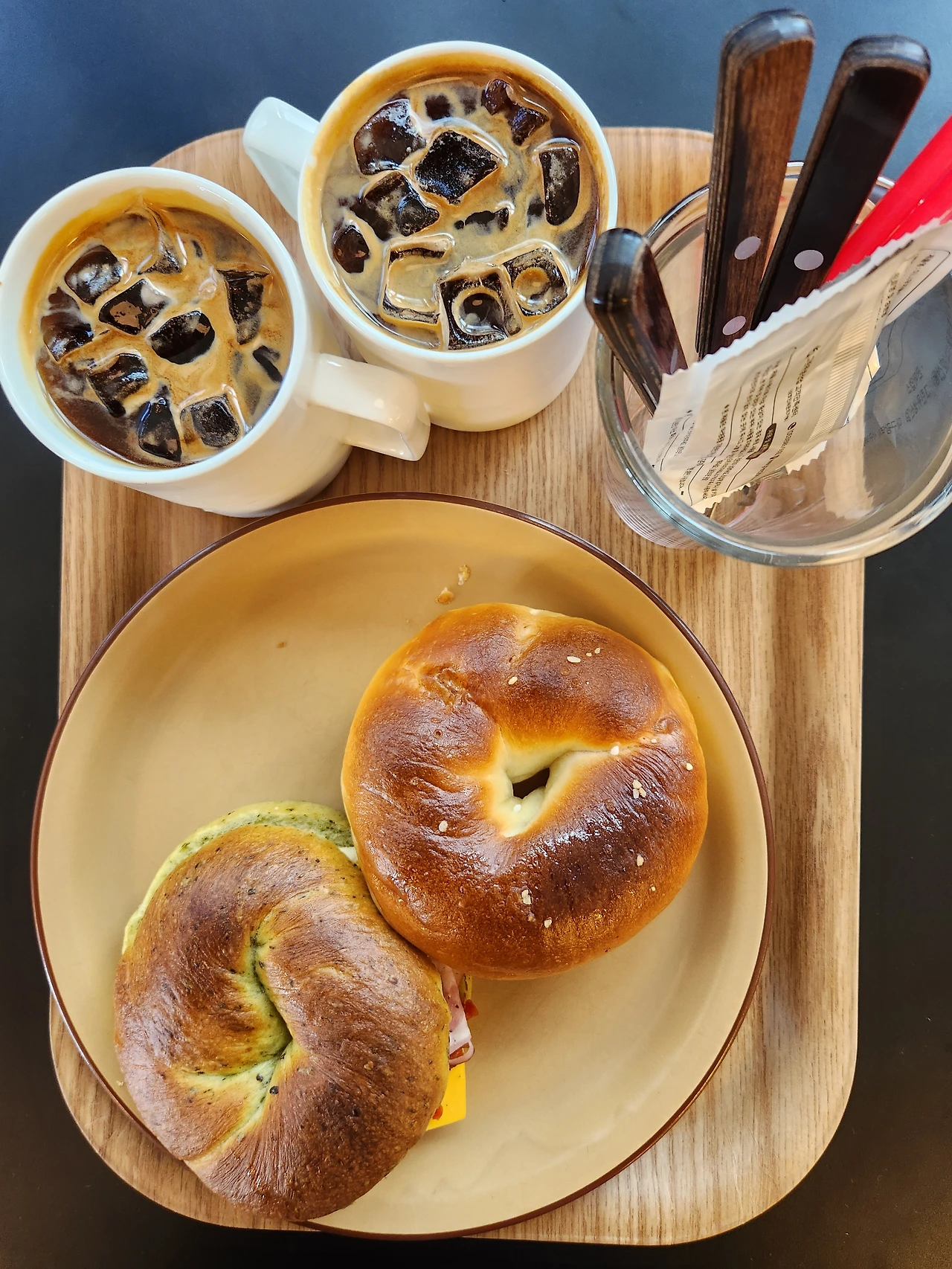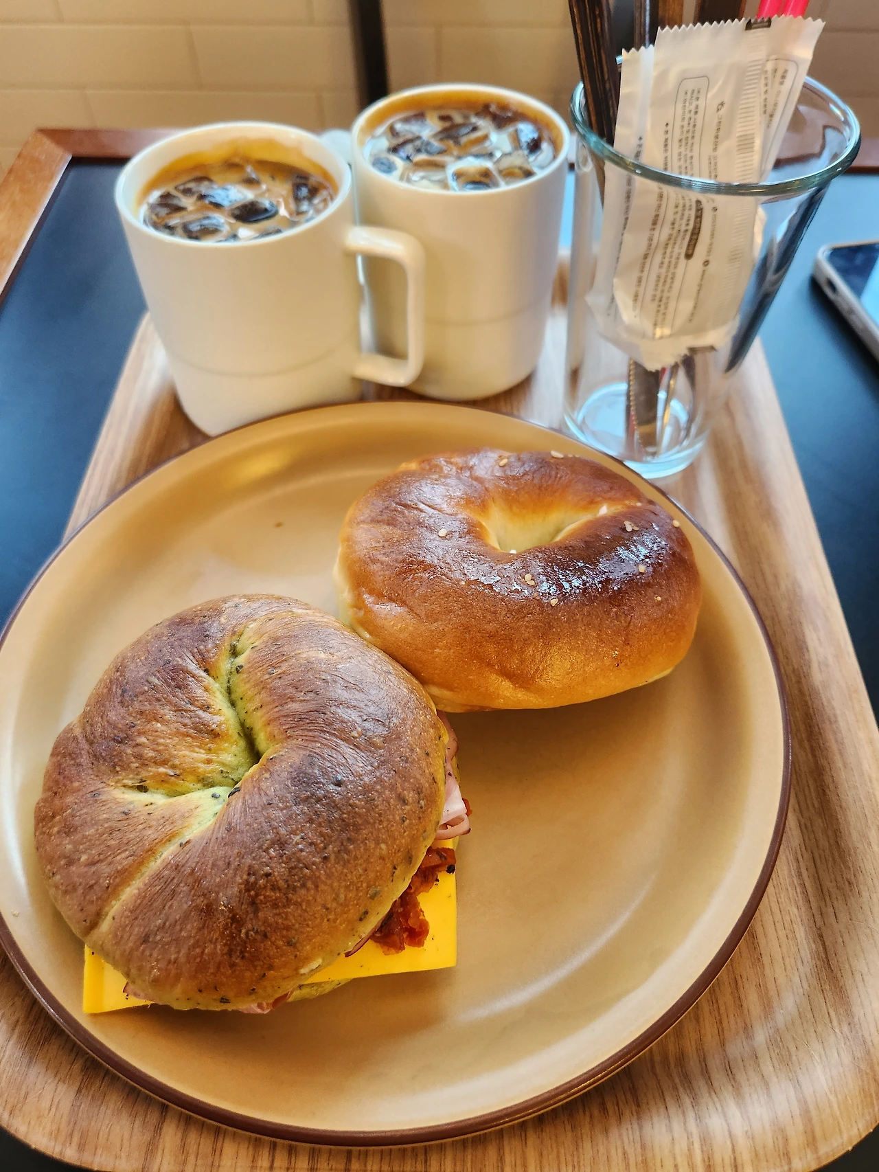 커피의 정석, 아이스아메리카노가 1,500원이라는 건 이 집의 대단한 마케팅 전략이다. 커피 한잔 먹으러 왔다가 베이글을 먹겠거니 했는데 베이글 한입 먹어보니 베이글 먹으러 왔다가 아아 한잔 하게 되겠다 싶다. 심지어 이렇게 맛있는 아아라면 안 먹을 수가 없겠다.