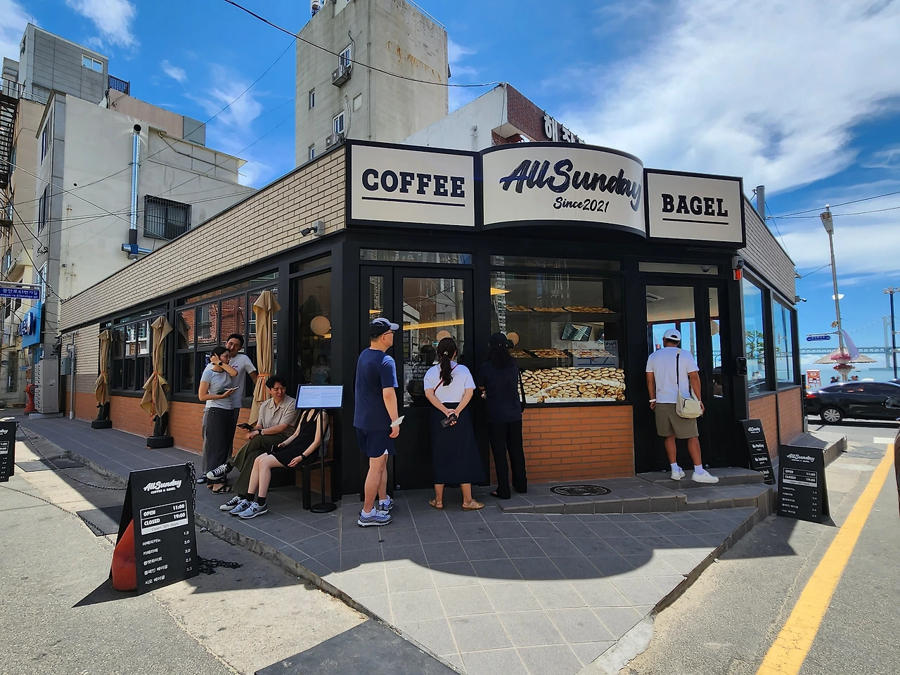 요즘 부산은 잠은 해운대에서 자고 광안리에서 논다는 말이 있을 정도로 광안리가 핫플의 정석이 되었다. 곳곳에 맛집, 카페, 주점 등 한집 건너 핫플 세례다. 그 가운데 오늘 만난 베이글 찐핫플 올선데이 광안점은 힘겨운 웨이팅도 잊을 만큼 맛과 뷰가 끝내주는 곳이다.
