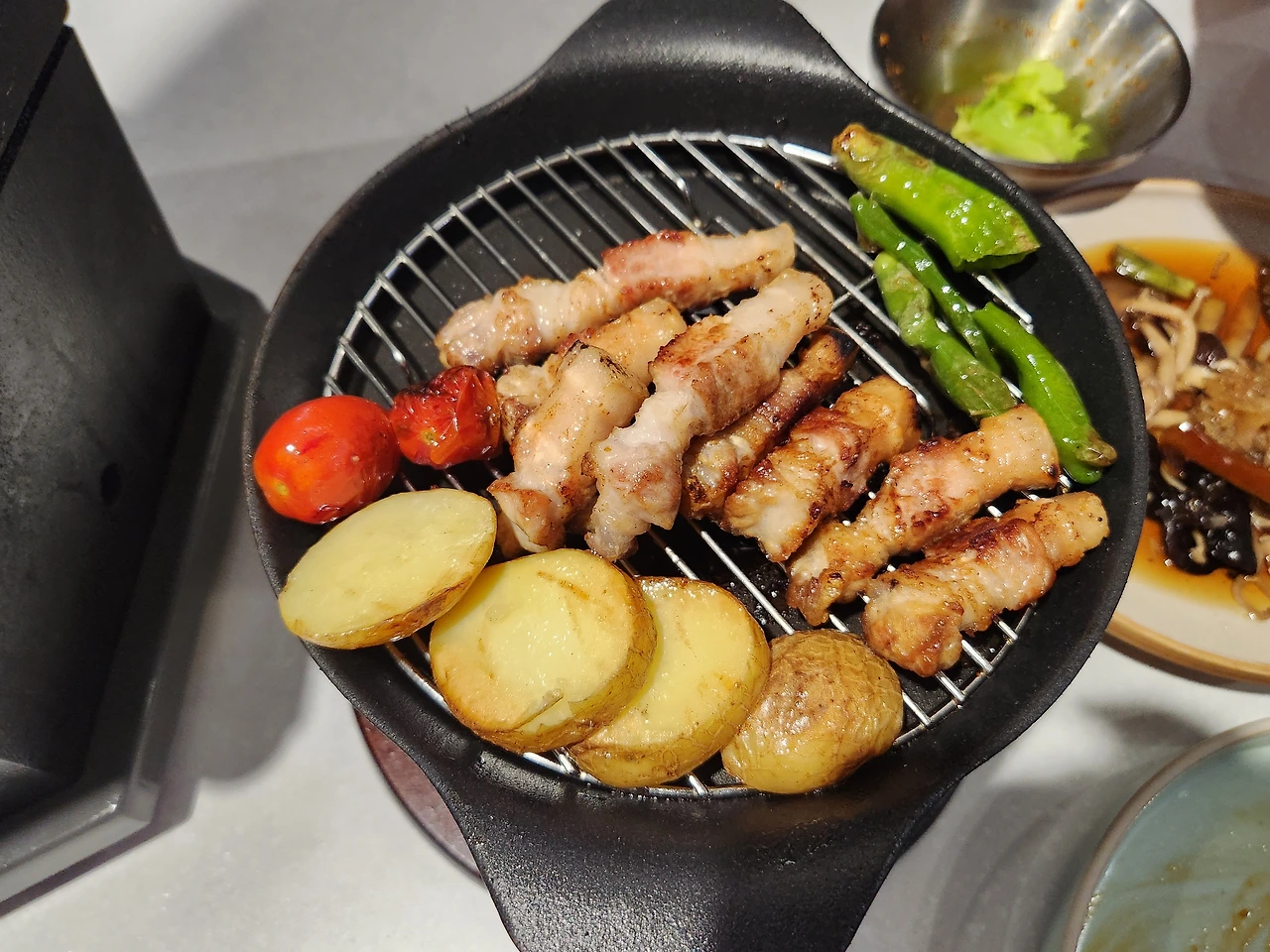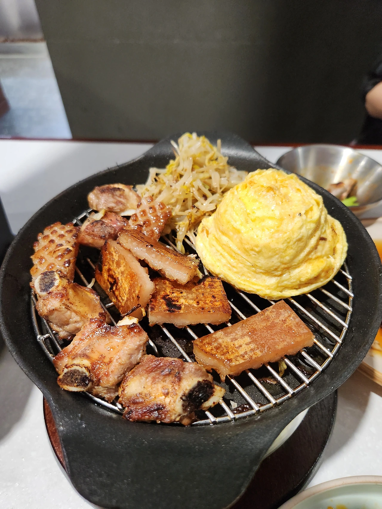 그 아쉬운 순간, 구세주처럼 나타난 계란말이! 우리가 흔히 아는 계란말이가 아니라 팔각 불판에서 고기향을 머금고 돌돌 말아지는 돼지고기 계란말이렷다! 일본 카스테라 한입 먹듯 부드러운 계란말이는 더 이상 들어갈 수 없는 위에 살짝 틈을 만들어 주었다. "아빠! 이렇게 부드러운 계란말이는 처음 봐!"