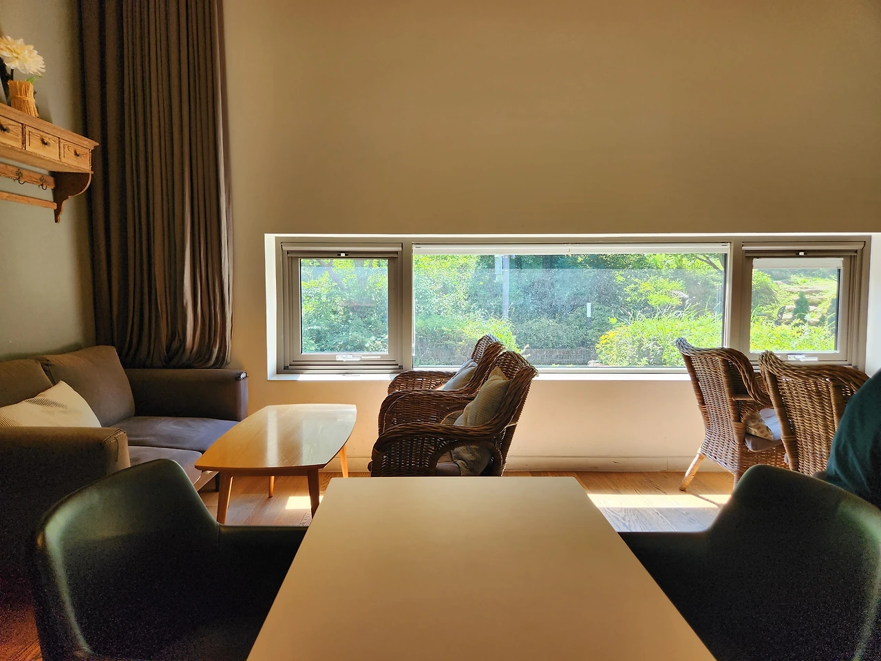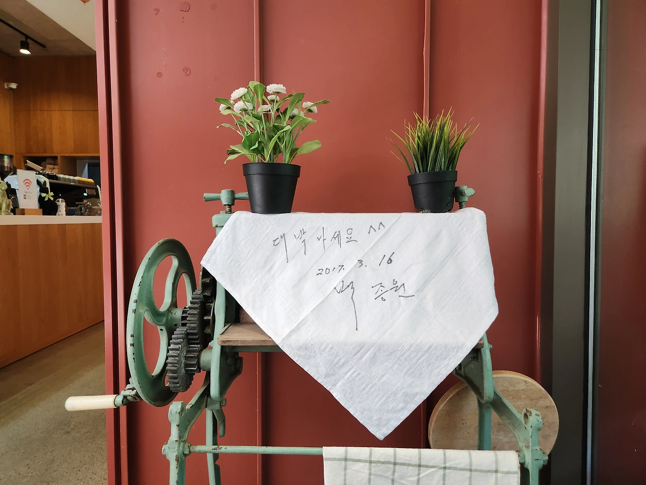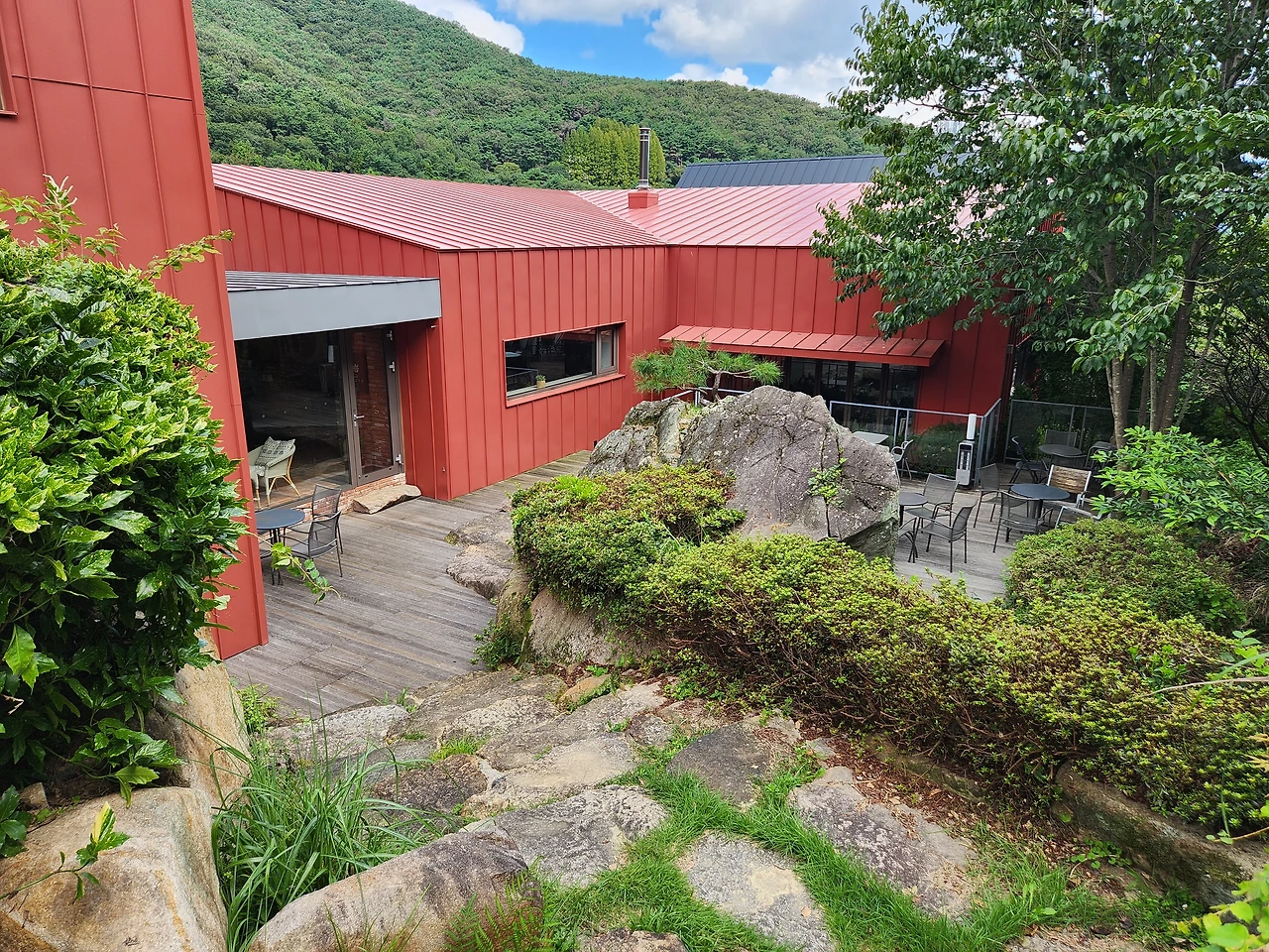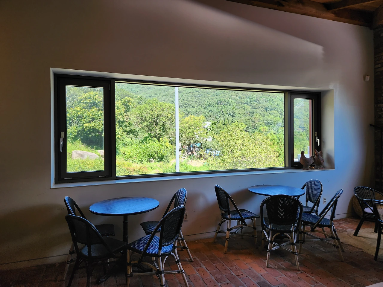 오전 10시 오픈 시간에 맞춰갔더니 갓 구운 빵들이 가득 놓여있다. 커피 역시 예전의 맛 그대로 맛있다. 아메리카노 5,500원, 라떼가 6,500원. 요즘 카페 가격에 비하면 노멀 하다. 이 커피 한잔으로 거대한 금정산 자연을 한 품에 껴안을 수 있다니 이 정도야. 1, 2층 실내에서 산 뷰, 숲뷰를 만끽하면 그대로 걸어서 숲길과 산길을 산책할 수 있다.