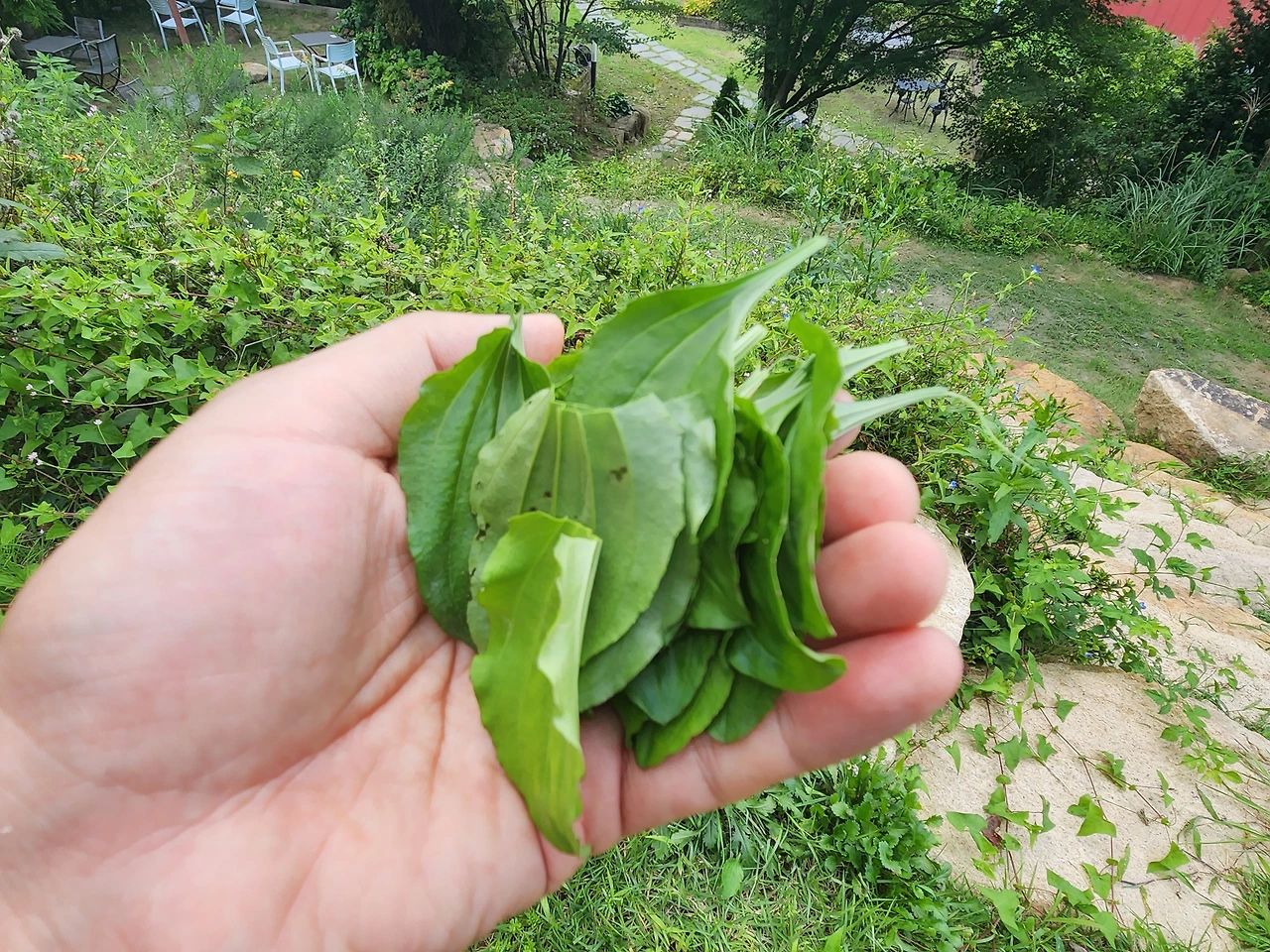 누가 부산은 바다의 도시라고 했던가. 이렇게 멋진 산속에 숲 속에 펼쳐진 부'산'의 숲 카페, 더팜 471이 있는데 말이다. 바다뷰 카페가 지겨운 분들이라면 녹색 마운틴뷰 카페, 더팜에서 산소 가득 자연에 푹 빠져봤으면 한다. 숲을 산책하다 질경이를 발견했다. 잎사귀 몇 개를 뜯어 가방에 넣었다. 잘 말려서 차로 우려먹어야겠다. 발길 닿는 대로 자연의 선물 가득한 더팜 471, 아직 여전히 잘 살아있더라.