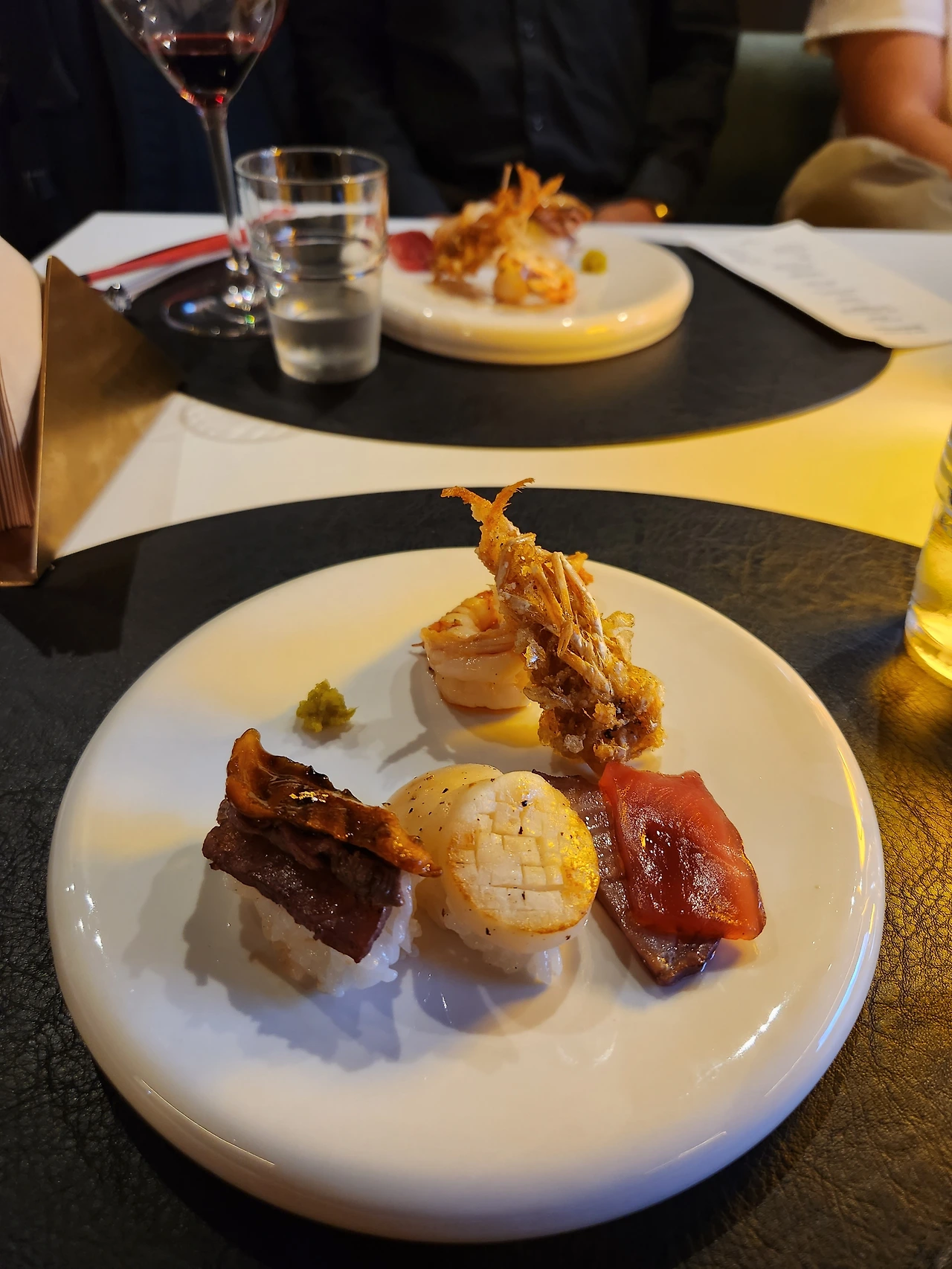애피타이저로 부드러운 크림으로 시작하는 1코스, 여름이라는 계절에 맞게 상큼하고도 차가운 식감의 소고기를 재료로 만들어진 2코스, 바다 음식이 한 접시에 가득 내어져 나오는 3코스 로얄 아쿠아, 흰 접시에 바다가 춤추는 듯했다. 지중해의 하루를 담은 파스타의 4코스, 5코스 상큼한 한 점에 이어 메인 6코스 실프와 페퍼로 마무리되었다. 맛있는 디저트까지.
