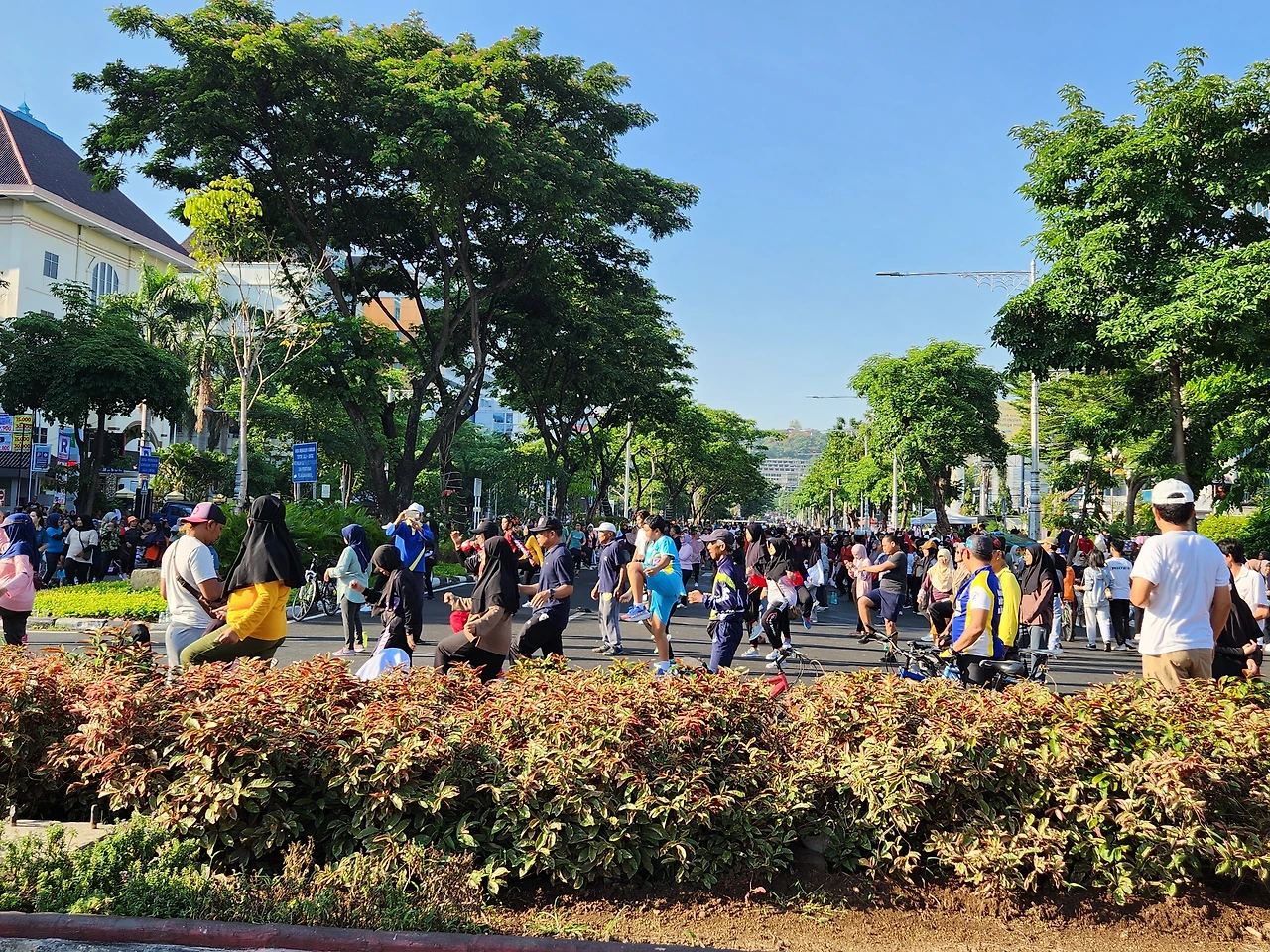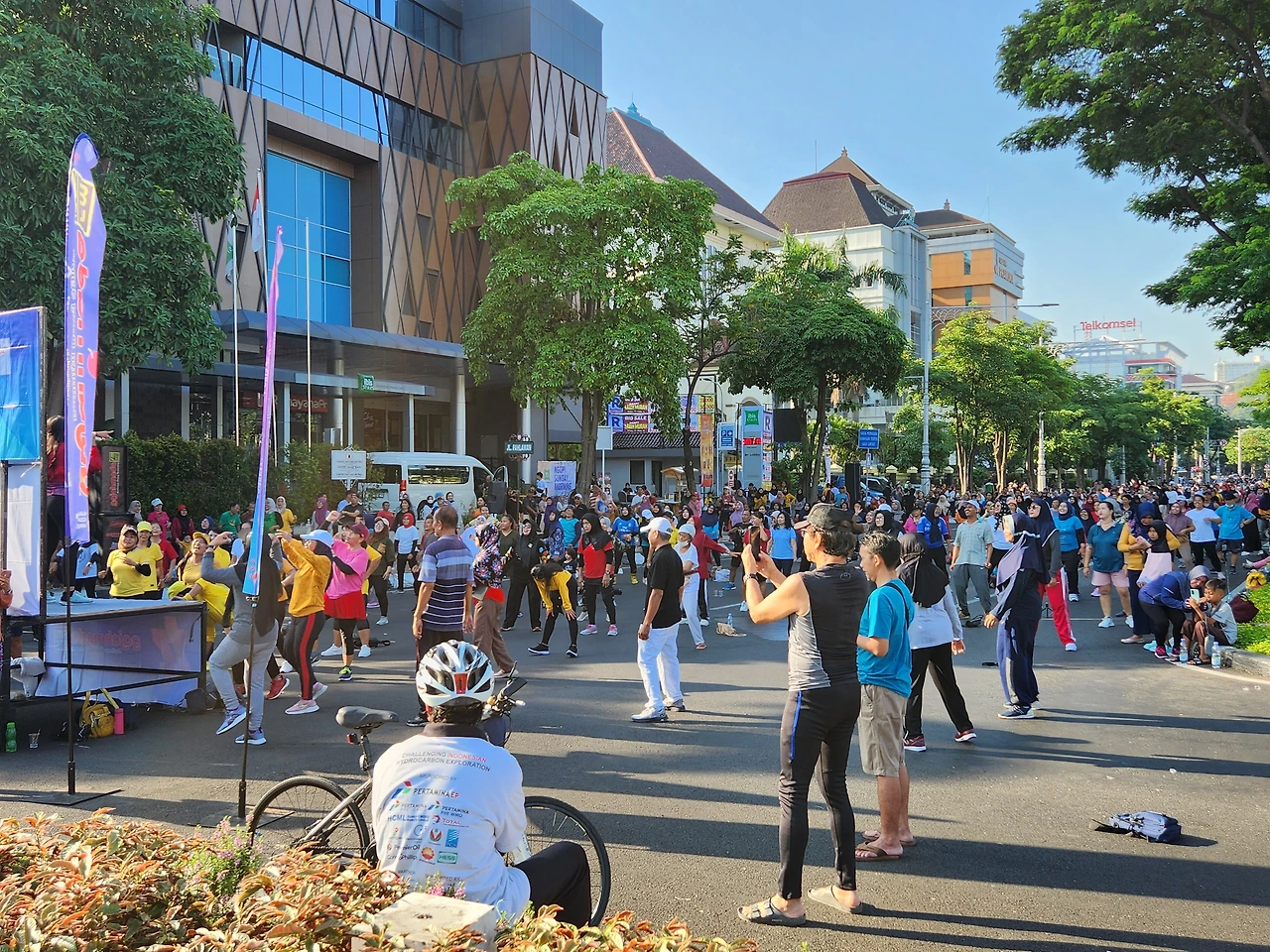 인도로 이동하는 날 아침, 일찍 일어나 호텔 바로 앞인 심팡리마 광장을 향했다. 이게 웬일. 전날 그렇게 쌩쌩 차와 오토바이가 달리며 겁이 났던 거리에 차가 한 대도 없다. 일요일 아침 오전 10시까지 차 없는 거리를 운영하며 시민들의 쉼터를 제공하고 있었다. 곳곳에 산책하는 사람들, 돗자리를 펴고 쉬며 담소를 나누는 사람들, 한편엔 다 같이 모여 에어로빅을 즐기는 사람들. 이 자체로도 진풍경이었다.