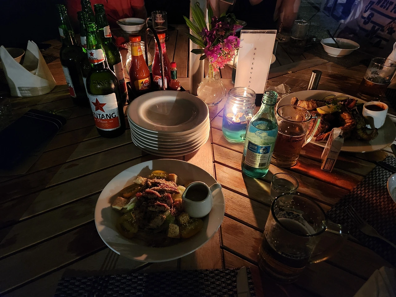 더워도 너무 더웠던 그날, 긴 촬영을 마무리하고 함께 한 저녁. 몇 해 전 해외법인의 맛집으로 소개되었던 웨스틴 맛집, 마리나. 밤이었지만 앞을 나가면 바로 바다가 있고 스테이크에 파스타에 나시고랭까지 여기가 발리인가 쯔파라인가 분위기에 취했던 밤이었다. 이 먼 곳에서 고생하는 한국 직원분들과 이런저런 담소를 나누다 보니 어느새 밤.