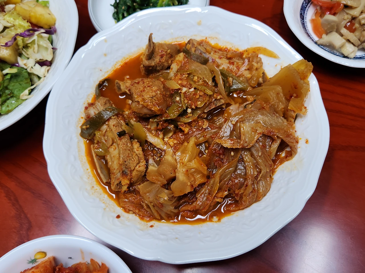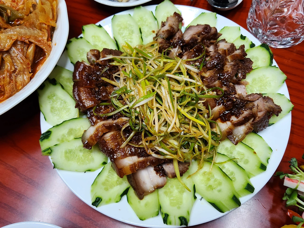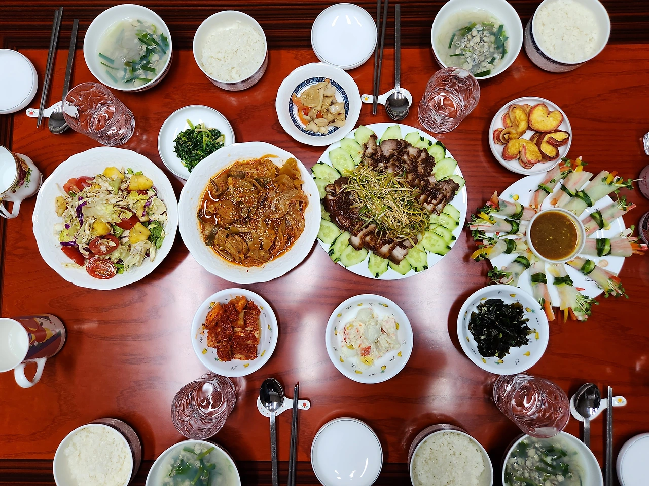 곳곳의 퇴직임원에 대한 글을 보면 조금은 우울한 면모가 없지 않은 요즘이다. 그래서 오늘 받은 이 맛있는 상은 퇴직임원인 그녀의 삶이 더욱 향기롭고 맛있다는 걸 단적으로 보여주는 고마운 상이다. 소스가 특히 기가 막히게 맛있는 오향장육, 짜지 않고 담백하면서도 맛있는 등뼈 김치찜, 손이 많이 가기로 유명한 야채 무말이(겨자 소스가 진짜 예술!), 맛살두부 하트전, 그리고 샐러드 2종까지. 이날의 이 밥상의 가장 하이라이트는 바로 채접국이었다. 살짝 매콤하면서도 당면이 어우러져 국이기보다 하나의 요리에 가까운 메뉴가 되었던 재첩국.