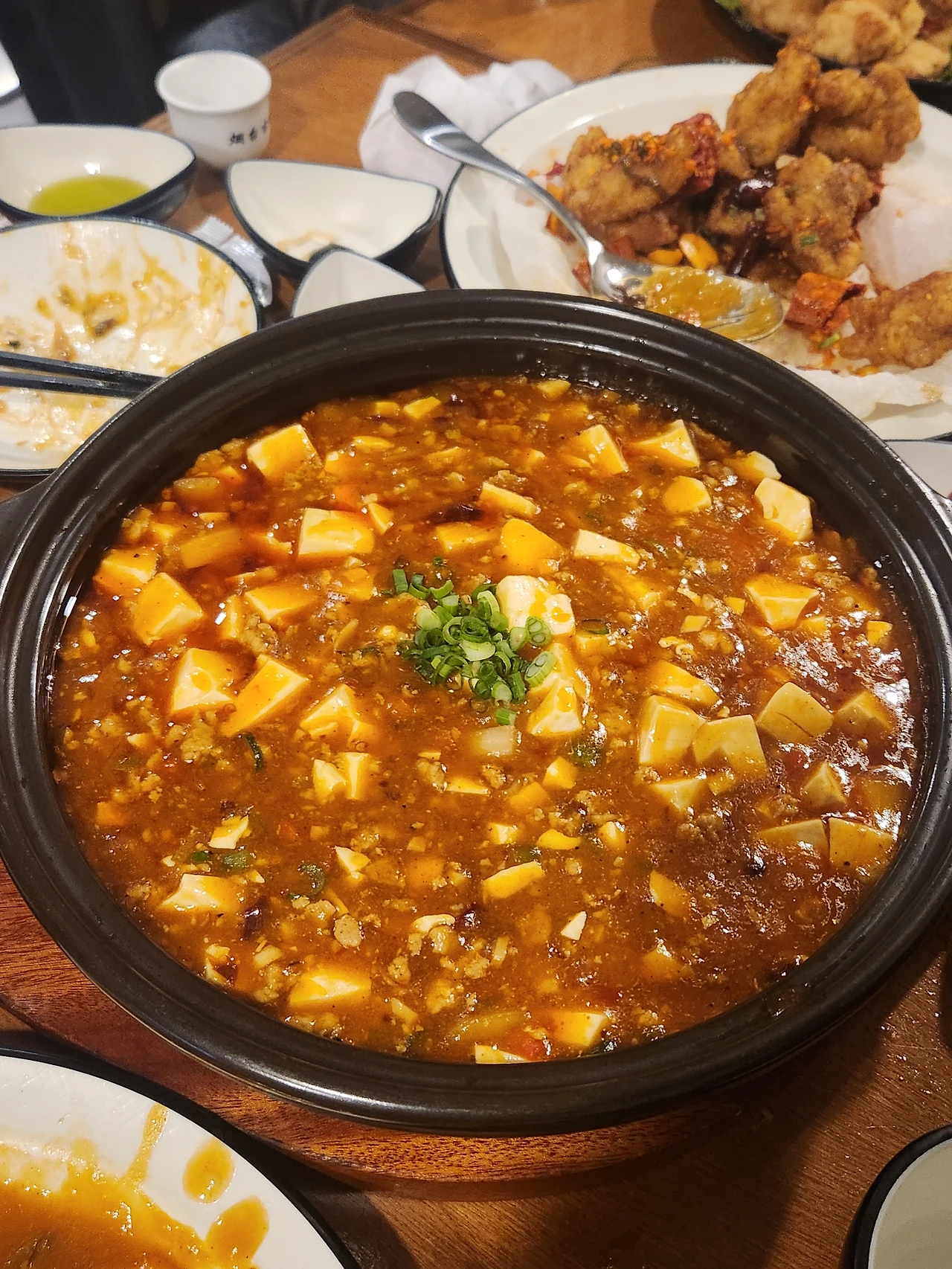 팔보채(38,000원), 생등심 탕수육(小 22,000원), 깐풍기(26,000원), 군만두(5,000원), 유린기(28,000원), 마파두(20,000원), 그리고 우리가 늘 먹던 소주와 맥주. 딱 적당한 메뉴에 더하지도 덜하지도 않은 맛과 양. 마파두부 하나로도 소주 한 병은 먹겠다 싶은 순간이다.