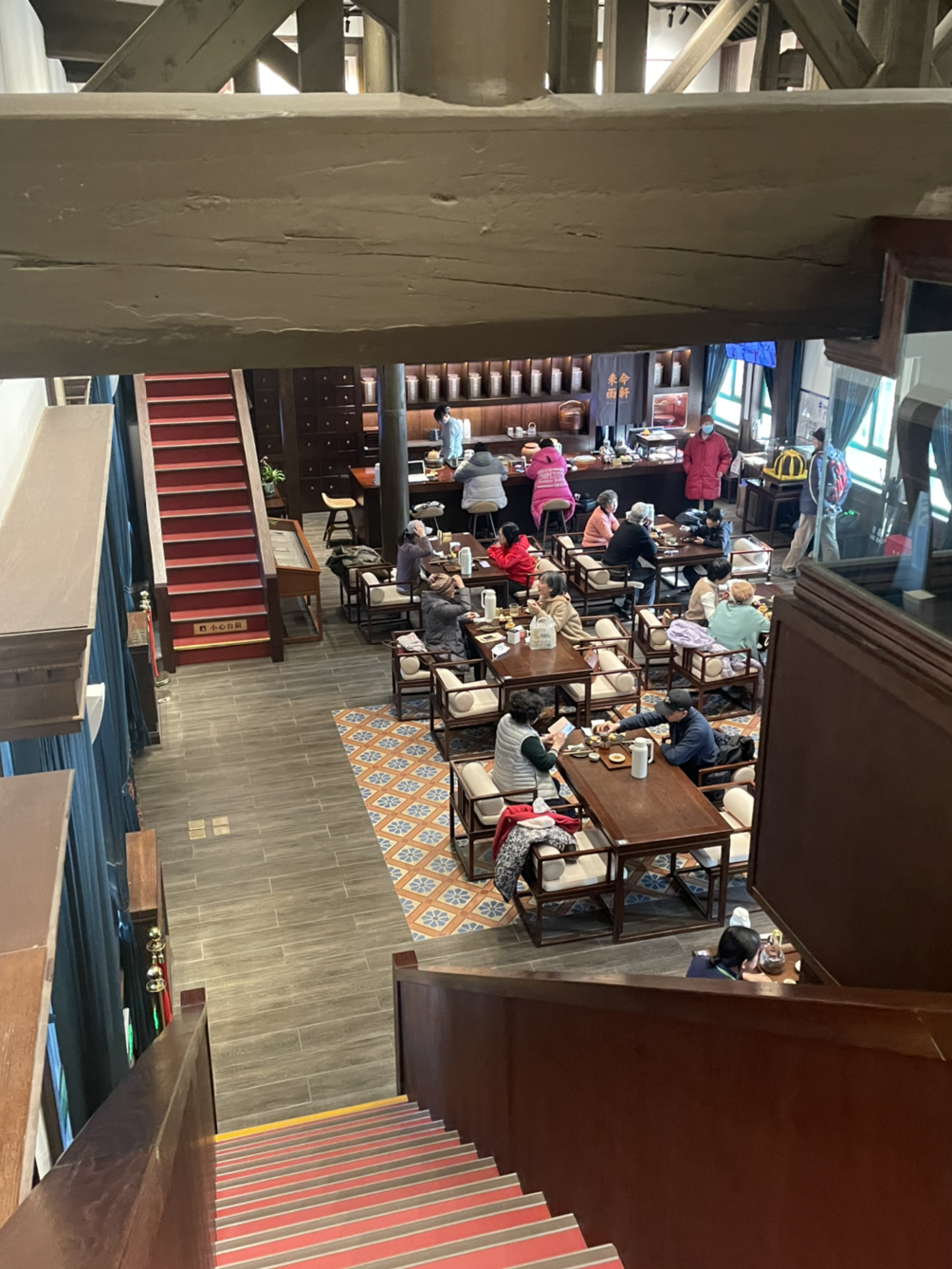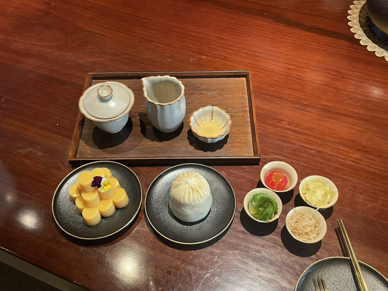 만터우와 함께 나온 홍차와 다과세트. 정갈하다라는 말이 어울리는 세트였다. 전통찻집의 주요한 역할 중 하나는 바로 당대 사람들의 교류의 장으로 통했다고 배웠다. 마치 당시의 찻집에 온 것 마냥, 사람들이 전자기기는 살포시 옆으로 치우고 서로 대화에만 집중하는 것이 눈에 보였다. 카페를 주로 가는 나에게 이런 광경은 살짝 낯설기까지했다.