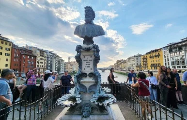 베키오 다리의 중간 지점에는 유명한 세공장인 첼리니(B. Cellini)의 청동으로 만들어진 흉상이 있다. 첼리니는 피렌체의 곳곳을 아름답게 공예로 장식한 르네상스 장인으로, 현재 그의 흉상은 많은 연인과 관광객들이 사진을 찍는 명소이다.