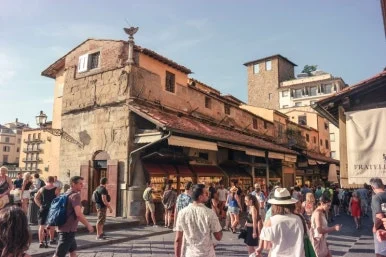 베키오 다리는 원래 교량의 기능 외에 시민들이 일상적으로 장을 보는 곳이었다. 당시 판매되는 물건들은 주로 아르노 강가의 생선이나 육고기 등이었는데, 생선을 손질한 뒤에 나오는 비린내 나는 찌꺼기들을 쉽게 버릴 수 있는 장소였기에 가판점들이 들어서게 된 것이다. 그런데 오늘날 베키오 다리를 가보면 귀금속 상점들이 즐비하다. 여기는 재미있는 사연이 존재한다. 당시 메디치가의 훼르디난도 대공은 바사리 통로를 통해 이동할 때 아래에서 올라오는 악취를 견길 수가 없어 베키오 다리의 상가 업종을 변경하고 거리를 재정비하도록 명령을 내렸다. 그 당시 권력자의 독단적이고 이기적인 결정이 오늘날 베키오 다리를 유명하게 만든 원인이라니 아이러니하다. 그러나 이유가 어찌 되었던 이후로 베키오 다리는 피렌체를 남북으로 이어주고 피렌체의 구도심을 하나로 이어주는 역할을 하게 된다.