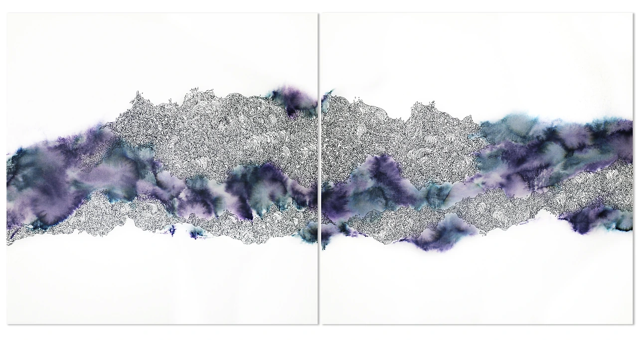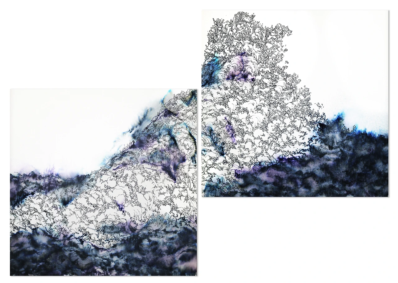 역에는 다양한 서사를 보여주고 있는 파도가 담겨있습니다. 하나하나 작은 파도들을 보여줌과 동시에 하나로 합쳐져 거대한 풍랑과 같은 모습을 보여주기도 합니다. 마치 조각난 이야기들이 모여 하나의 연결된 서사시를 만들어 내고 있습니다. 검푸른 파도 덩어리들은 거대한 자연 앞에 인간은 그저 작은 존재임을 표현해 내고 있습니다. 파도처럼 밀려드는 고난과 역경들을 담담히 마주하는 자세를 가지려는 다짐처럼 보이기도 합니다. 반복적으로 그려지는 파도의 물결들은 마치 자신의 지난 고난을 잊지 않기 위해 세기고, 다음을 준비하는 자세처럼 읽히기도 한다. 앞으로 또다시 다가올 거센 파도들을 이겨내기 위해 자신을 되돌아보는 회고적인 자세를 보여주고 있습니다.