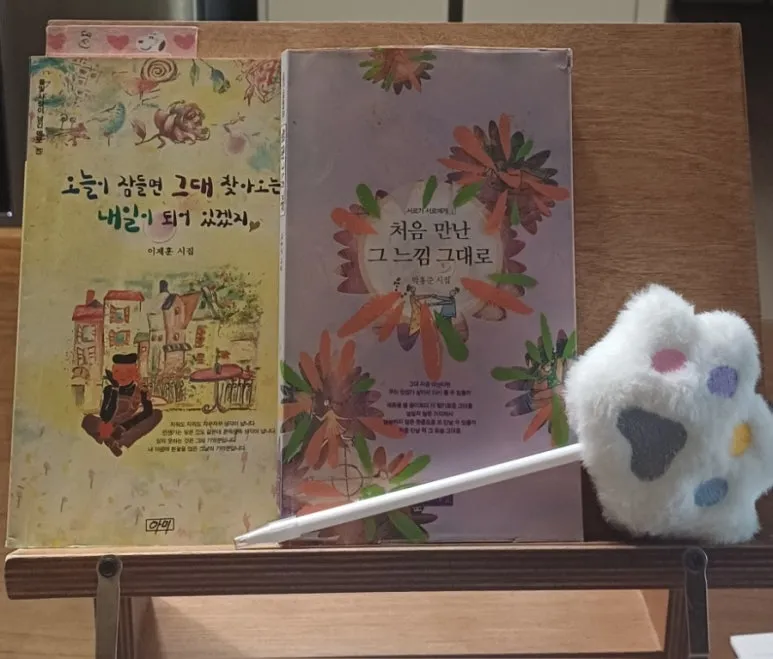책장 정리 중 발견한 누르스름한 시집 두 권