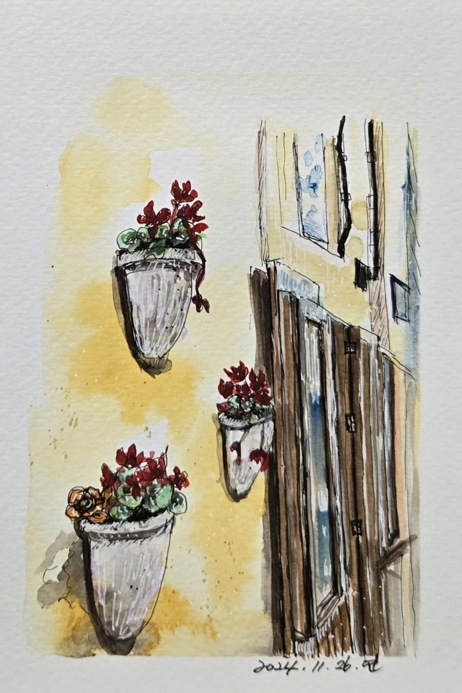 벽면에 예쁜화분을 설치하여 운치있는 타운거리를