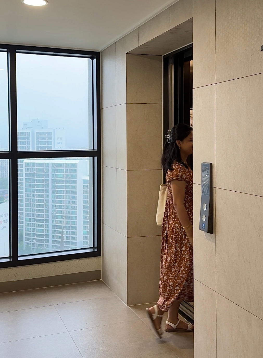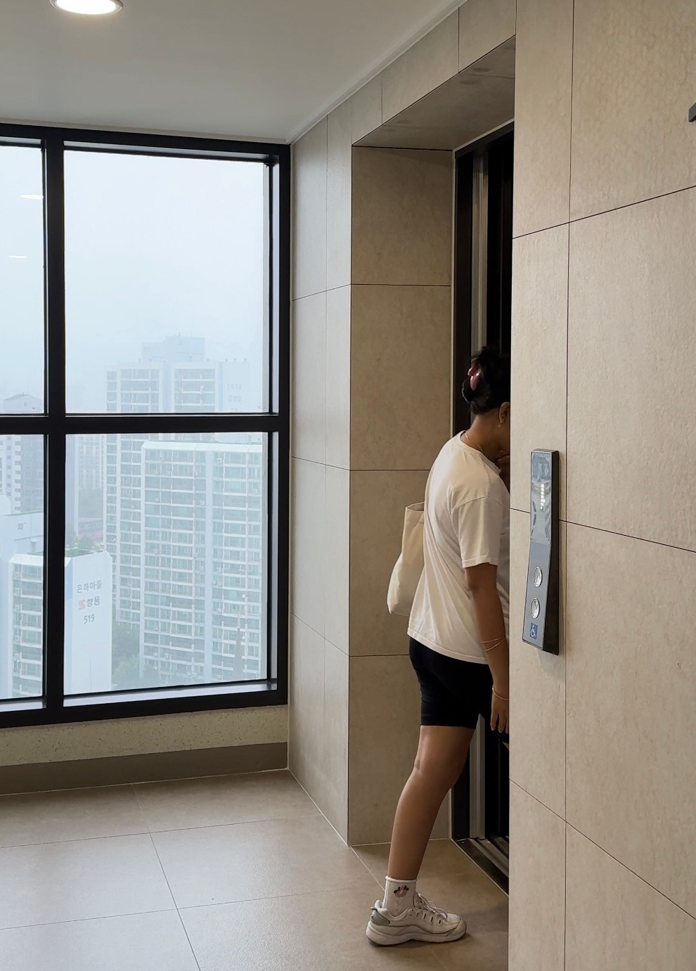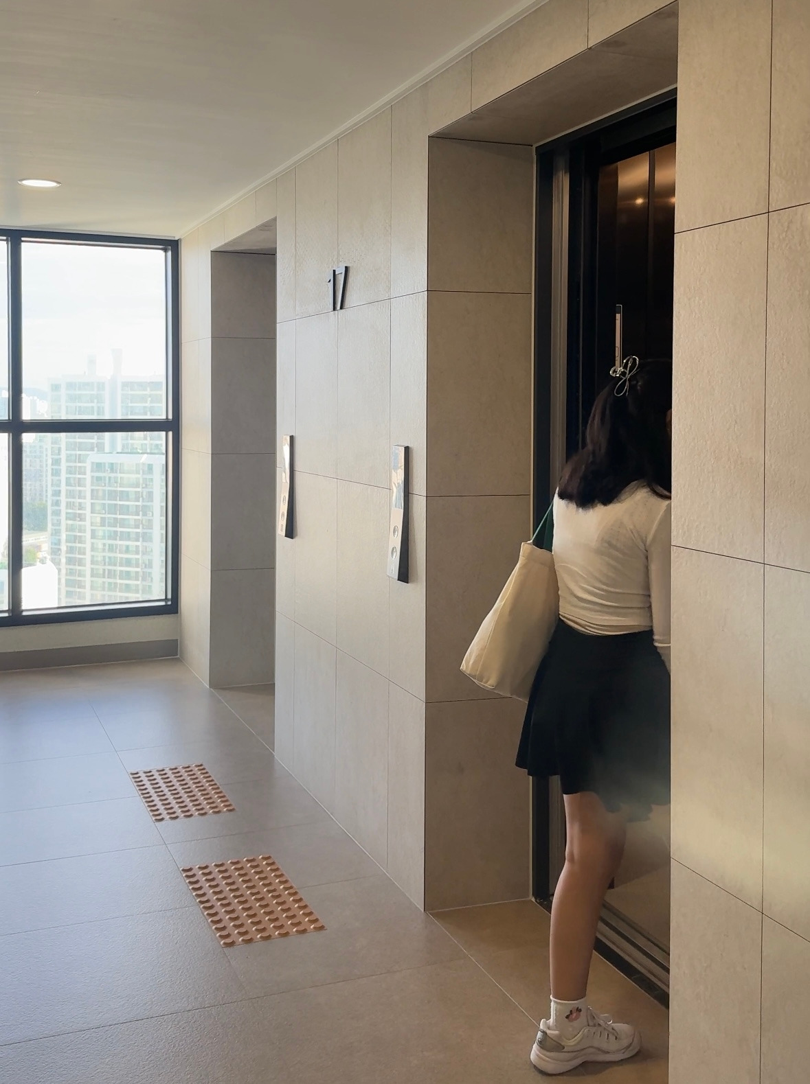 우리 소누 매일 아침 등교하는 길. 엘리베이터 같이 기다려 주기.