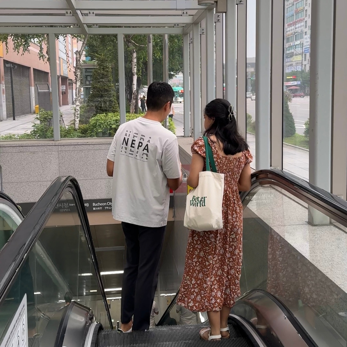 이날은 지하철역까지 함께 했고 제법 익숙하게 걸어 내려간다. 열차가 곧 도착예정이라 뛰는 내려가는 소누. 고새 한국사람이 다 되었다.