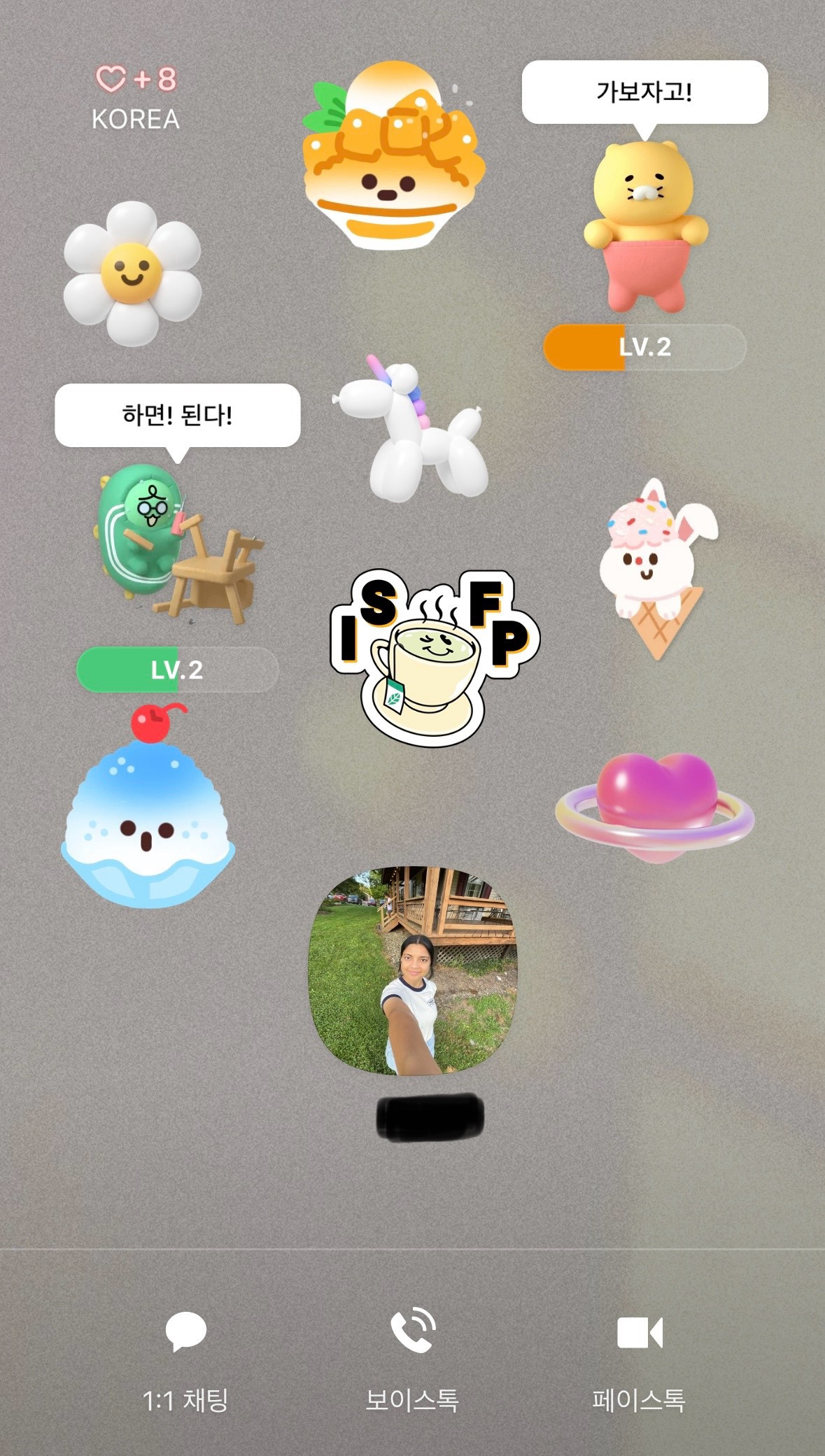 소누의 카카오톡. 이번에 여행하면서 계정을 만들었다고 한다. 한국어도 중간중간 보이고 소녀답게 뭐가 많다. 한창 유행했던 MBTI까지.