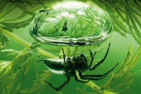이 생물은 호수나 오래된 못의 수초 사이에 종모양으로 집을 짓는데, 그 속에 공기를 채우며 생활하고, 알도 그 안에서 보호한다. 다리나 배에 난 털로 공기를 붙여 운반한다. 뭍(수면)에 올라오면 꽁무니에 공기를 담고 다시 물속으로 들어가 배를 집 안에 넣은 채 앞다리를 내놓고 산다. 물거미는 땅 위 생활을 하다가 물속 생활형태로 진화를 한 것으로 보고 있다. 또한 물고기처럼 아가미로 숨을 쉬는 게 아니라서 육지에서도 자유로운 활동을 할 수 있다. 하지만 수생 생물로 진화했기에 물로 들어가려는 뚜렷한 습성을 가지고 있어, 평생 육지에 살 수 없다는 것으로 추측된다.