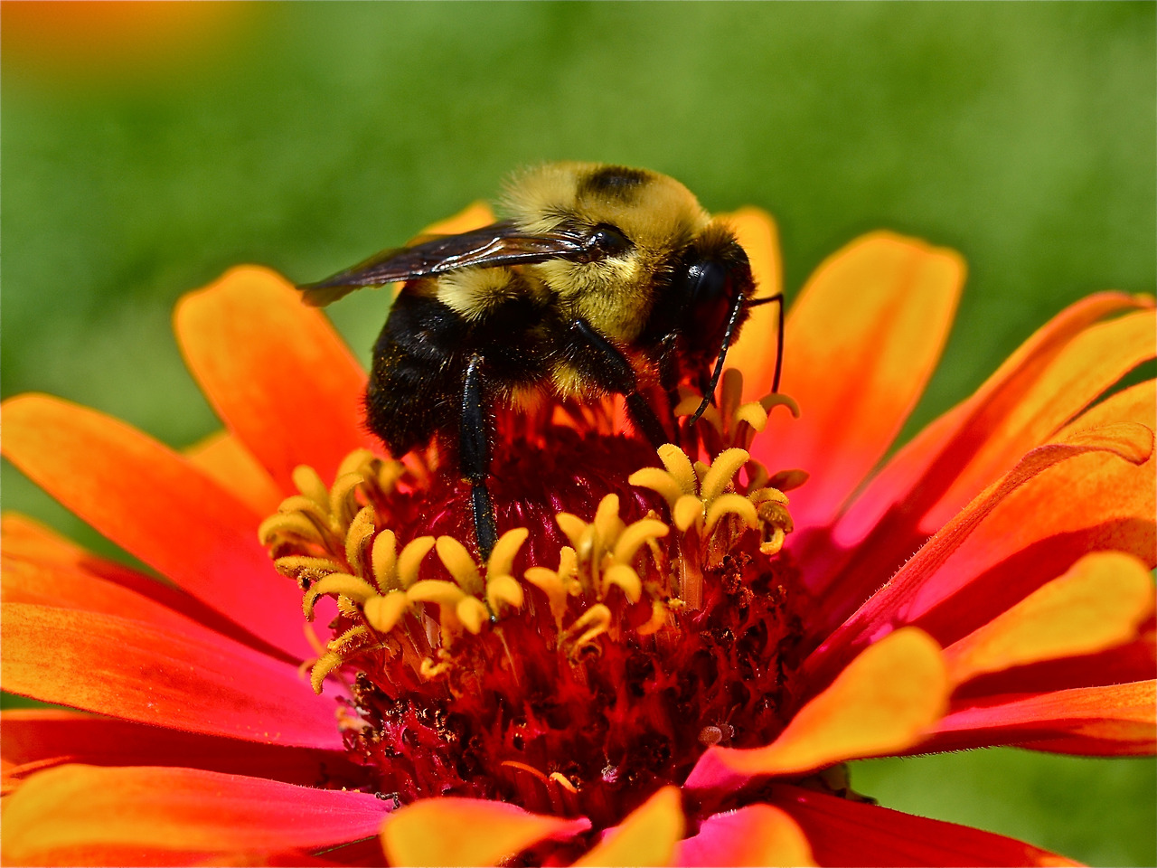 호박벌은 꿀벌처럼 '사회적인 곤충'이다. 군사 체계는 여왕벌, 일벌, 수벌이며, 암컷(일벌)은 검은 털, 배는 주황 털로 뒤덮여있고, 수벌은 노란 털과 주황 털로 이루어져 있다. 이들은 주로 8월 말 ~ 10월 초에 들이나 꽃이 있는 곳에서 출현한다. 꼬꼬마 시절에 이 곤충을 아카시아, 나팔꽃, 진달래 근처에서 볼 수 있었다. 여왕벌은 일벌과 외형이 같아서 구별하기 어렵다. 하지만 늦봄이나 이른 여름에 둘을 비교하면 진한 색(여왕벌)과 옅은 색(일벌)으로 한눈에 구별할 수 있다. 여왕벌은 여생 동안 무려 1000개의 알을 낳는다. 수벌은 일벌과 다르게 집에서 꿀만 먹으며, 8월 ~10월 초가 되면 신여왕과 짝짓기를 하고 여생을 마무리한다. 11~2월 말까지 신여왕벌은 땅 안 속에서 깊은 동면을 한다. 수벌은 독침이 없기 때문에 '반려 곤충' 축에서도 많은 사랑을 받는다.