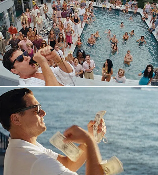 앞서 말했듯 이 영화는 높은 곳에서 추락하는 인물을 다루는 영화입니다. 즉 고점과 저점의 체감 차이가 클수록 이 영화는 위력적이 된다는 말입니다. 하지만 이 영화는 저점을 굉장히 잘 묘사한데에 반해 고점에 대한 묘사가 빈약합니다. 초반부 야쿠자와 함께 간 술집이나 중반부에 간 스트립 클럽이나 제약회사 사장과 함께 참여한 파티나 별반 차이가 느껴지지 않습니다. 자고로 이런류의 영화는 고점에서 폭발하는 장면이 있어야 합니다. 더 울프 오브 월스트리트에서 사무실에 스트리퍼들과 각종 광대들을 불러 난장판을 벌이는 장면처럼 말이죠. 하지만 이 영화에는 그런 묘사가 꽤나 빈약합니다. 배에서 돈을 뿌리는 장면은 더 울프 오브 월스트리트에서 자신을 잡으러 왔지만 결국 성과 없이 돌아가는 FBI 요원들을 조롱하며 돈을 뿌리는 장면이 훨씬 강렬했습니다. 김정아를 안고 금고에서 춤을 추고, 태극기를 휘날리는 장면들도 있지만 그 힘이 약했다고 생각합니다. 그렇기에 후반부 멋진 장면들이 즐비해도 그 장면들에 힘이 담기지 않습니다.