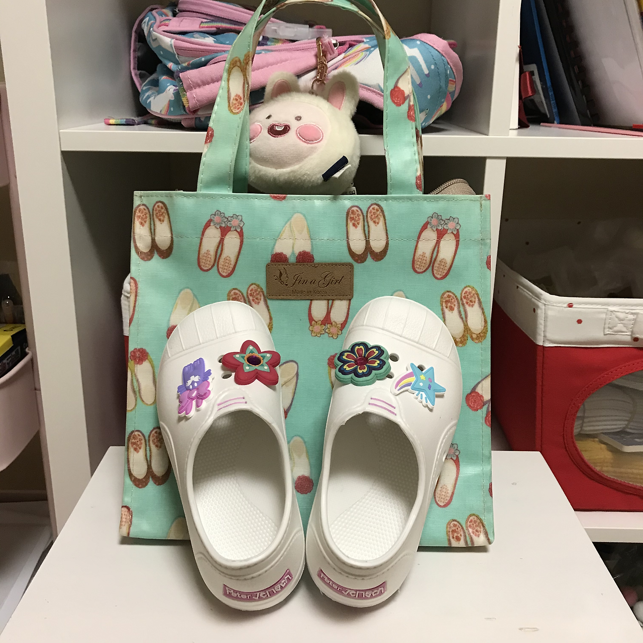 미국에서 아쉬웠던 점은 유니콘 신발주머니를 찾지 못했다는 것. 지난가을, 부산 외갓집에서 외할아버지랑 깡통시장으로 놀러 갔다. 깡통시장과 주변 광복동 거리에는 수입 팬시점이 많아서 예쁜 걸 득템 할 수 있다. 우리도 여기저기 구경하다 신발주머니를 발견했다. 실내화가 들어가는 가방이라 구두 패턴의 민트색 컬러로 골랐다. 아쉽게도 입학하는 학교는 신발주머니를 들고 다니지 않는단다. 준비물이나, 학원 가방으로 써야 할 거 같다.