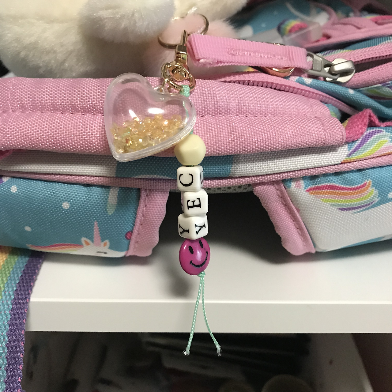 미국에서도, 한국으로 돌아와서도 가방을 무척 아끼고 있다. 얼마 전엔 책가방에 이름 이니셜 키링도 직접 만들어서 달아줬다. (곰손 엄마와 금손 아이는 동대문에서 재료 사 와서 어린이집 친구들 졸업 선물로 각각의 이름 이니셜 키링을 만들었다 :)) 이 가방을 메고 학교에 갈 날을 손꼽아 기다리고 있다.