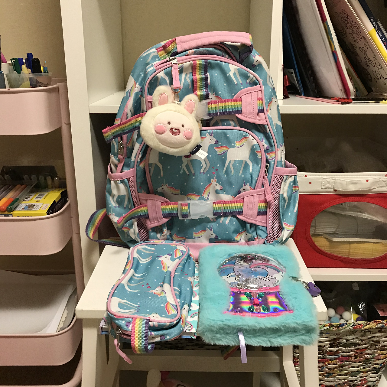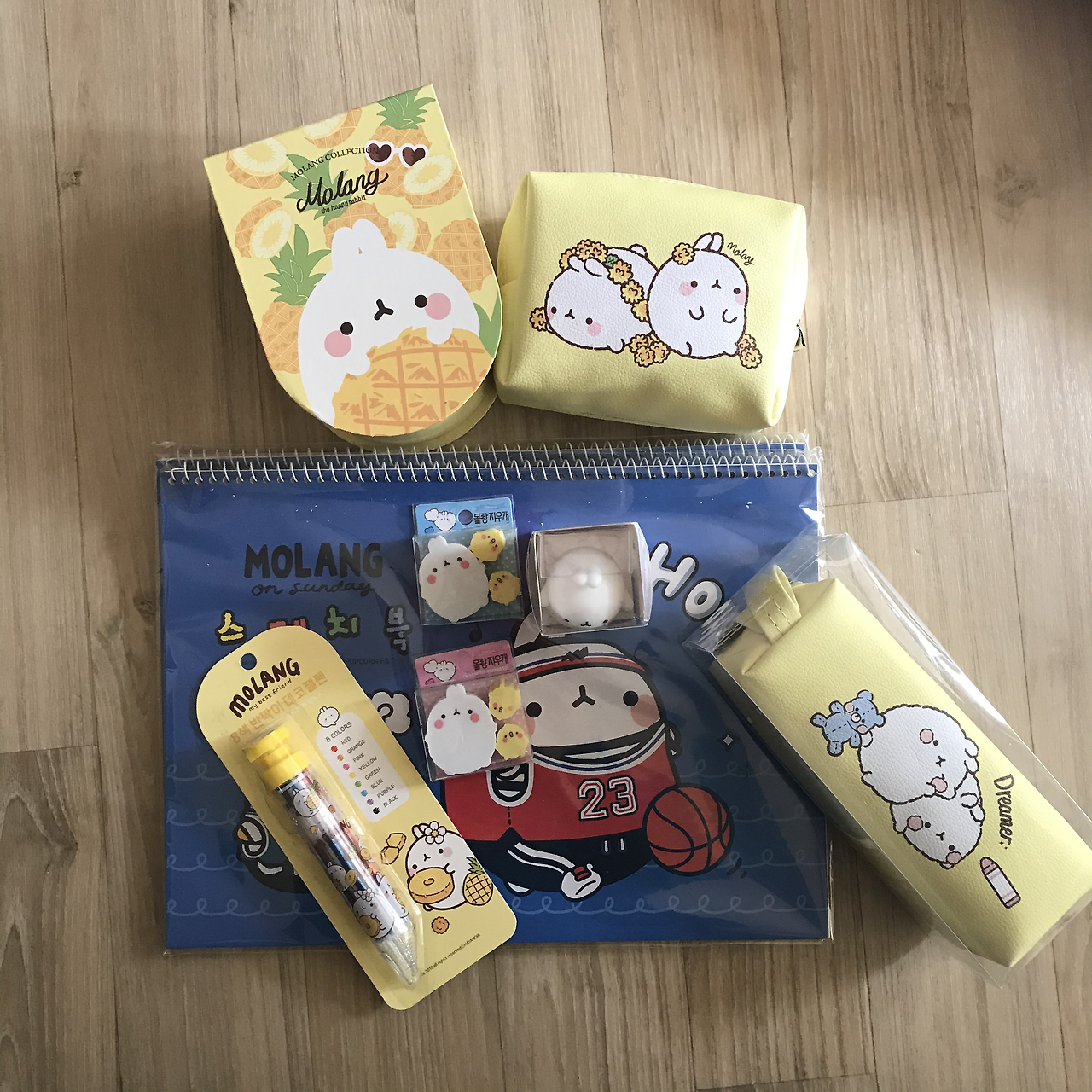 시작은 유니콘이었으나 엔딩은 몰랑이다. 몰랑이 연필부터 지우개, 컬러펜, 필통, 파우치, 스케치북 등등 온갖 새 학기 용품을 몰랑이로 통일시켰다.