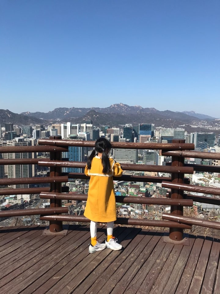 봄방학 3주 차, 미세먼지 하나 없는 맑고 깨끗한 봄날이 연일 이어졌다. 하루는 서울 남산타워로, 또 하루는 선재도 바닷길로 향했다. 친구 집에 옛날 꽁이 장난감을 배달하고 오던 중, 남산타워를 발견했다. 남산을 케이블카 타고 가봤지 걸어서 가본 적이 없었던 나는 날이 좋아 걸어서 올라가 보기로 했다. 수많은 계단길을 오르다가 뒤를 돌아보면 서울 시내가 한눈에 보였다. 비록 마스크를 끼고 오르는 길이지만 투명한 날 서울을 둘러보는 재미도 꽤 쏠쏠했다. 계속 꽁이는 저기 우리 아파트가 보인다고 했고 (나는 속으로 진짜 보였으면 했지만) 남산의 성곽과 남산타워를 보는 즐거움은 매우 특별했다. 한가한 평일 오후 남산타워에 오는 묘미는 이런 거였다.
