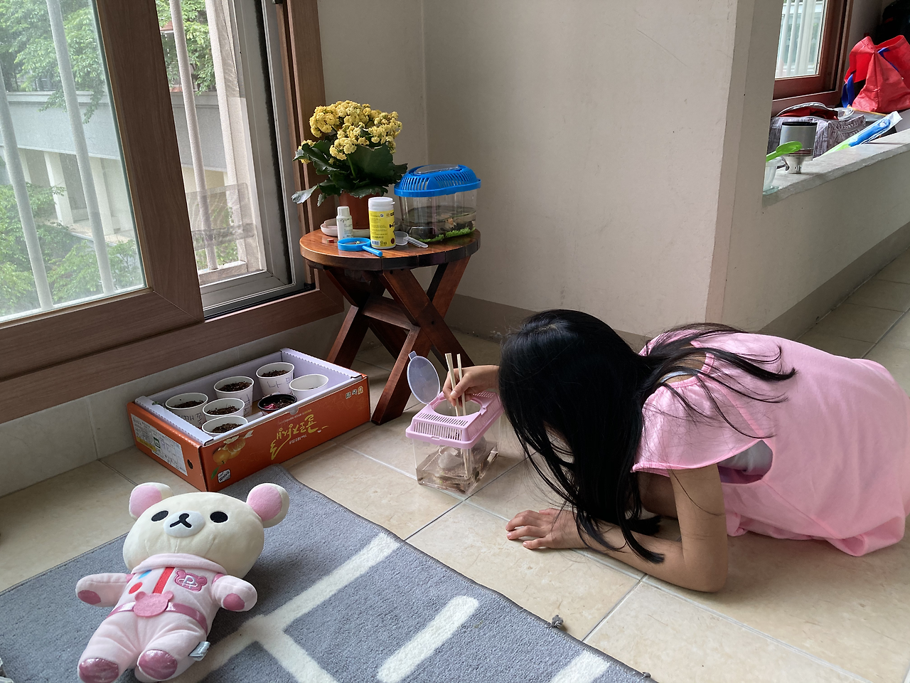 3월 경칩이 지나고 온 동네 계곡과 연못으로 개구리알을 보러 다녔던 우리인데, 어느덧 집에서 개구리를 관찰하고 있다. 지난주 우리 인생의 첫 개구리가 탄생했다. 꽁이가 4살 때부터 해마다 올챙이를 데려와 집에서 키웠는데, 성체가 된 개구리를 본 건 이번이 처음이다. 첫 해엔 물을 잘 갈아주지 못해 죽었고, 두 번째 해엔 먹이를 잘 주지 못해 죽었고, 그다음 해엔 개구리가 되는 과정에서 내가 불안해 (개구리가 되어 온 집안을 돌아다닐 무서운 상상에 ㅠㅠ) 주변 연못에 다시 풀어주기도 했다.