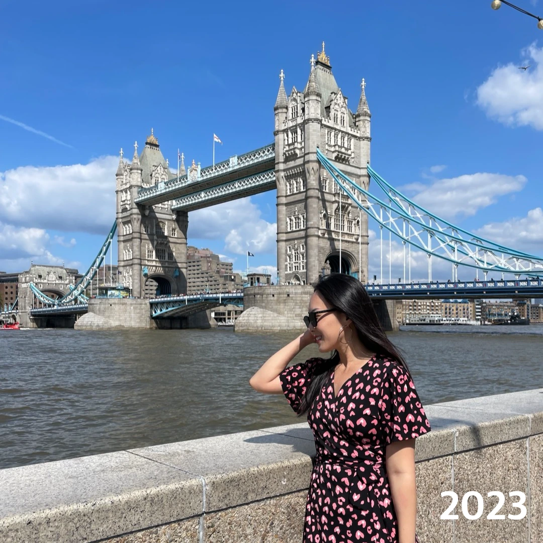 2022년: 취준 하면서 마음이 너무 힘들어 찾은 타워 브릿지 / 2023년: 취직 후 런던의 여름을 즐기는 모습