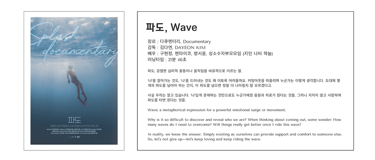 - 장 소 : 서울시청 8층 다목적홀, 온라인스트리밍(4.19TV / cinehubkorea.com)