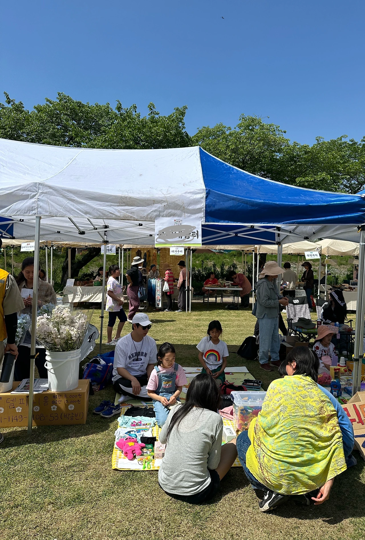 돗자리 위에 숭이가 열심히 준비한 가격표와 물건들을 펼쳐놓는데 옆집의 화려한 간판이 눈에 들어왔다. 'ㅇㅇ네 보물상자'라는 이름에 걸맞게 모든 연령대가 사랑할만한 장난감들이 500원, 1000원에 나와 있었다. 꼬마들이 우리 옆집에만 모여서 신나게 물건을 사간 건 어쩌면 당연한 일이었다. 우리 장터는? 옆가게 주인 오빠를 포함한 4명의 착한 사람들이 사'주신' 게 전부였다.. 막판에는 큰맘먹고 "몽땅 1000원"에 내놨는데도 말이다.
