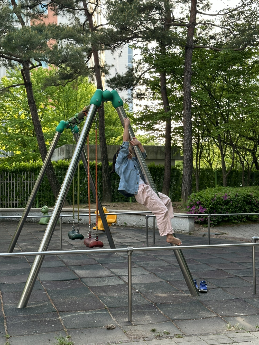 여행지의 낯선 놀이터도 좋아하지만 숭이가 가장 사랑하는 곳은 지금 살고 있는 아파트 단지내의 작은 놀이터다. 그네, 미끄럼틀, 목마 몇개로 이루어진 작고 평범한 놀이터에는 지나칠 때마다 “언니!”를 외치는 1학년 동생들이 있기 때문이다.