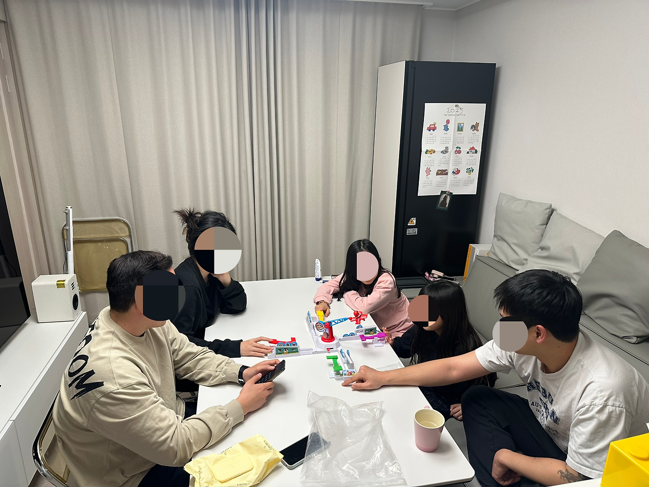 그래서 용기가 났다. 사랑하는 사람들을 우리 집을 초대할 용기! 나와 우탄이의 오랜 친구 한 명을 시작으로 집들이 랠리가 시작됐다. 입주 후 둘째 주 주말에는 평소 친하게 지내는 가족을 초대했는데 우리까지 합쳐서 총 어른 네 명에 아이 두 명이었다. 아이들은 자기들끼리 방에 들어가 놀고 우리 넷은 소파에 쪼르륵 앉아 편안히 TV를 봤다. (소파의 한쪽만 꺼지는 걸 방지하기 위해 무거운 남자 둘을 양 끝에 배치하는 섬세함까지 발휘했다.) 마지막에는 다 같이 둘러앉아 보드게임도 했으니 6명은 가볍게 통과였다. 예전처럼 밤새 놀고 자고 갈 수는 없었지만 이 또한 게스트하우스가 오픈하면 해결될 것이었다.