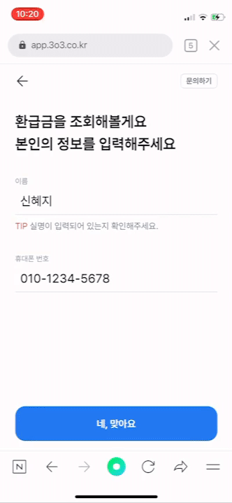 그래서 화면 진입 후 10초, 13초, 16초, 19초마다 사용자가 인증을 완료했는지 자동으로 확인하도록 했어요. 즉 사용자는 인증을 완료하고 삼쩜삼에 돌아왔을 때, 인증 완료 버튼을 누르지 않아도 자동으로 인증될 수 있었어요.