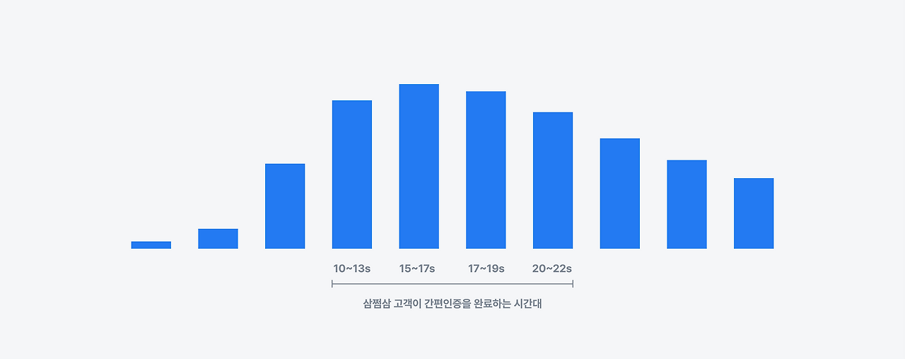 간편인증 완료 시간을 데이터로 확인해 보니, 삼쩜삼 고객들은 화면 진입 10초 이후부터 인증 완료 버튼을 많이 누르기 시작했어요.