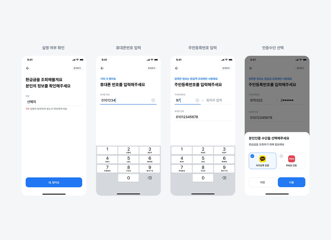 1. 가장 먼저 실명 여부를 확인해요.