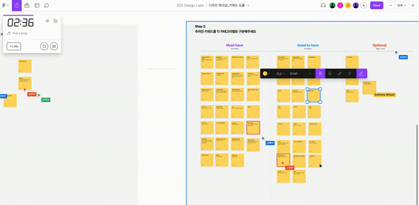 이제 자유롭게 도출한 키워드를 세 가지 카테고리별로 나눕니다.