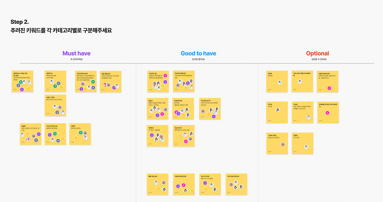카테고리 분류 과정을 통해서 현재 우리 팀에서 꼭 필요한 역량이 무엇인지를 크게 나눌 수 있어요.