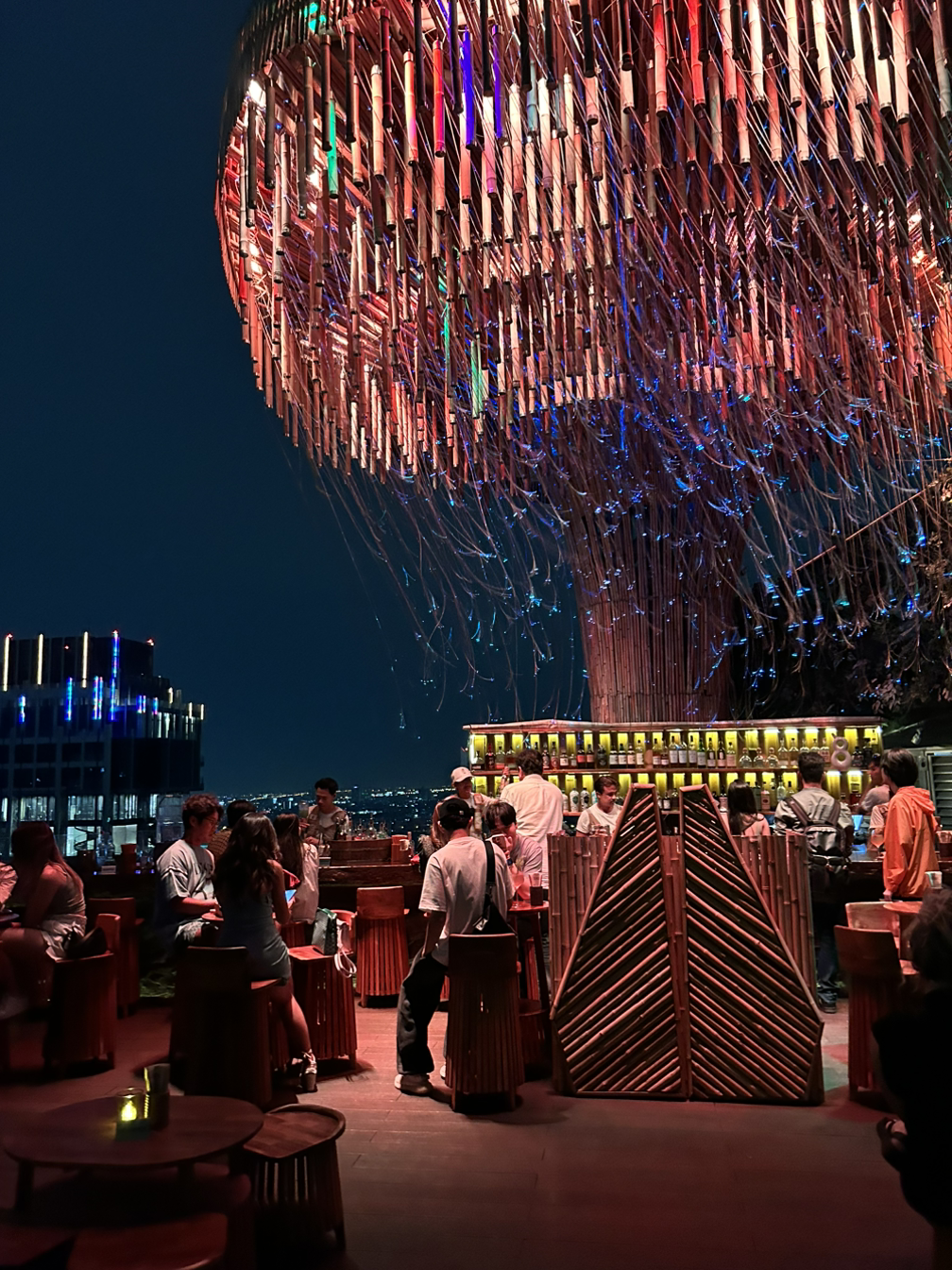 40층에서 내려서 46층으로 가는 엘리베이터를 타고 올라갔는데 전망이 너무 멋있고 해파리 같은 아바타느낌의 지붕과 음악에 오길 잘했다고 느꼈다