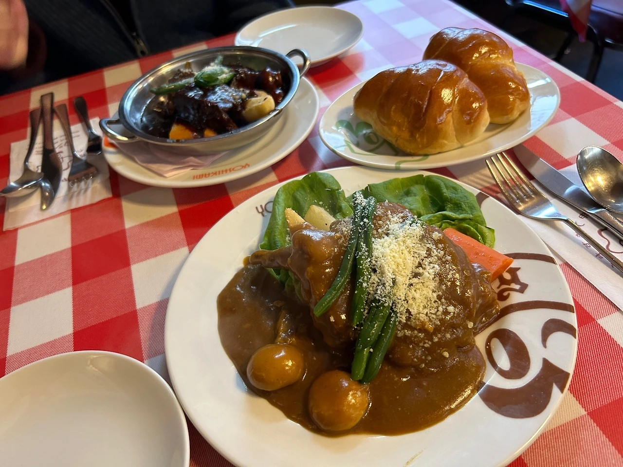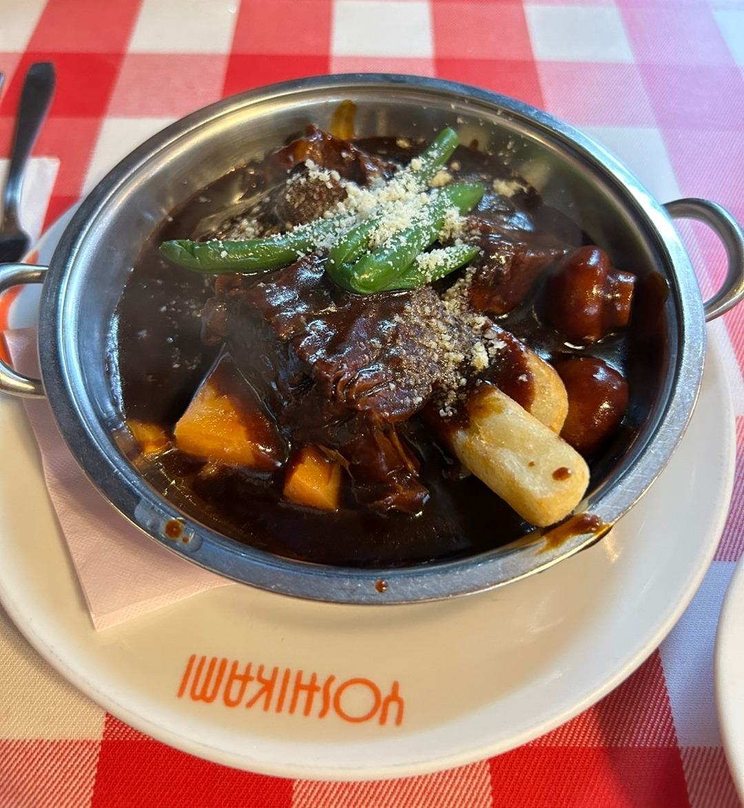 오전 11시쯤 아사쿠사 가기 한 정거장에서 내려서 갓파바시 주방도구시장에 도착해서 둘러보다 저번부터 사고 싶었던 첫 번째 가게에서 평소 가지고 싶었던 식탁용 예쁜 스탠리스 작은 냄비를 팔아서 샀더니 두 번째 가게는 똑같은 물건을 30프로 더 싸게 팔아서 비교하고 둘러보고 구매할걸 후회했다 그래서 더 싼 데에서 몇 개 더 샀다 두시가 넘어 배고파서 맛집을 찾다가 요쇼쿠요시카미라는 오래된 식당인데 대기 목록에 이름을 적고 40분 있다 오라고 해서 좀 피곤했는데 동네를 돌아다니다 다시 예약한 식당으로 갔다 주문은 소고기스튜가 3000엔이고 닭고기카레가 1650에 주문을 하고 밥과 빵을 따로 주문을 했다 내가 아까 샀던 것과 같은 작은 냄비에 소고기스튜가 나왔는데 앙증맞게 예뻤다 소고기스튜를 한입 먹는 순간 왜 이 식당이 유명하고 쇠고기스튜를 첫 번째로 꼽는지 알 수 있었다 너무 맛있었다 그동안 일본에서 먹은 것 중 최고였다