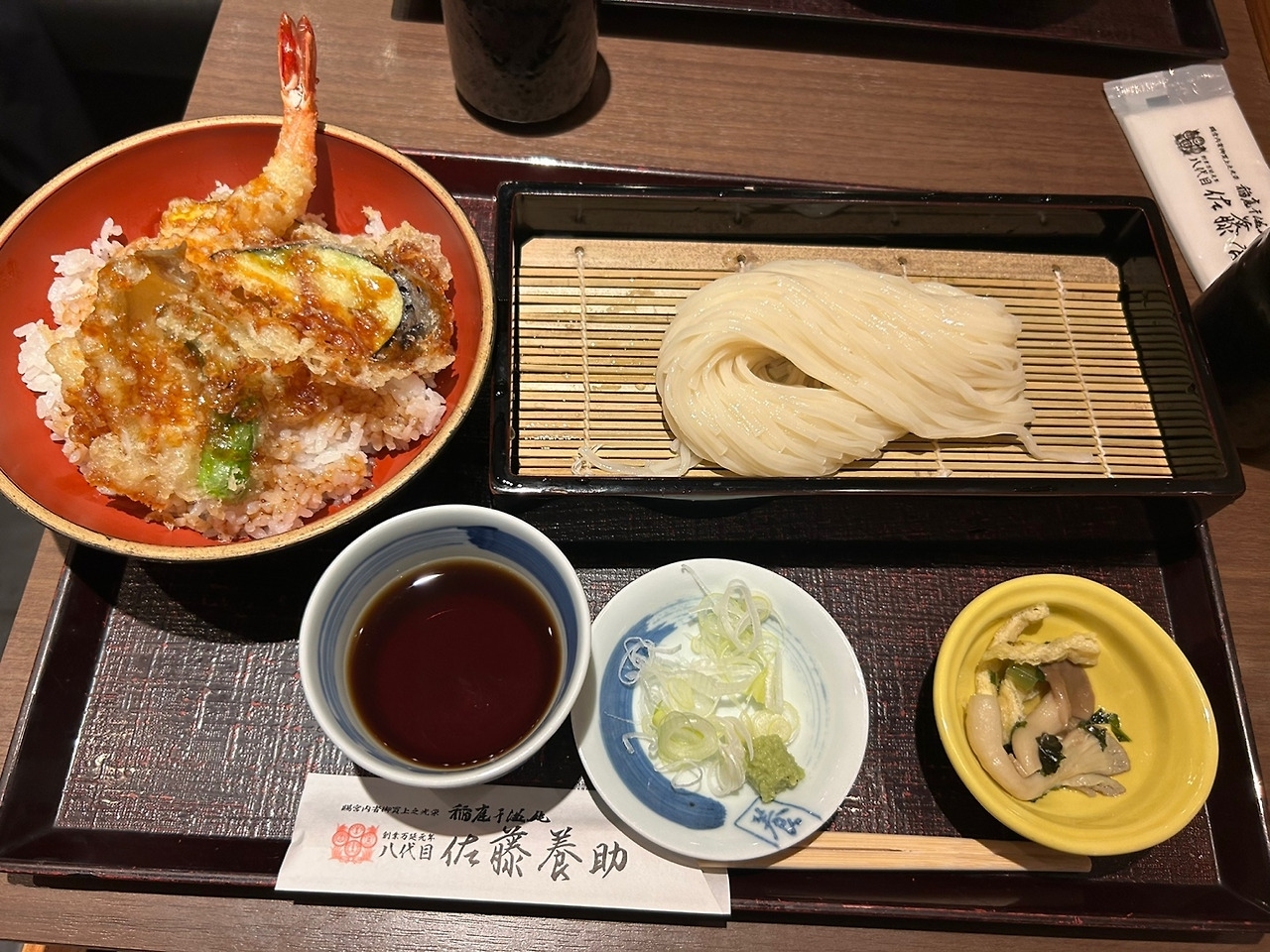 아침부터 부슬부슬 비가 또 내렸다 오늘 한국행 밤 비행기가 예약되여서 트렁크를 호텔에 맡기고아침식사로 150년 된 맛집에서 우동를 먹었다 사토요스케 긴자에서 딸은 냉우동과 튀김세트 1750엔과 내가 평소에 좋아하는 유부우동과 튀김세트 2500엔에 먹었다 딸은 이 냉우동이 일본에서 먹은 것 중