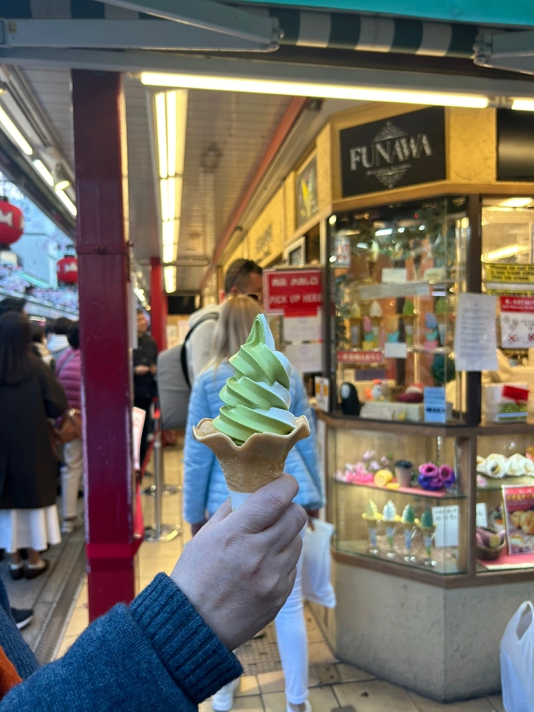 다시 걷다가 나카시세도리 골목길을 지나가다 몇 년 전에 왔었고 아이스크림을 사 먹었던 기억에 오늘도 녹차맛으로 사 먹었다