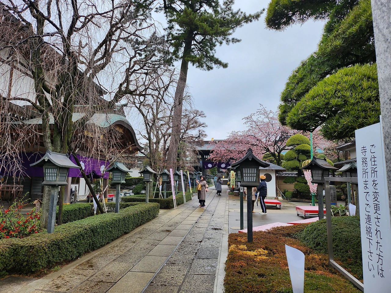 소가역에 내려서 14번 버스로 갈아타고 가는 도중 갑자기버스운전사가 서둘러 내리더니 버스 입구에 철발판을 펴서 휠체어를 타신 할머니와 할아버지를 정성스럽게 모시면서 태우는 것과 차분하게 젊은 청년도 같이 도와서 무사히 타는 것을 보니 여유롭고 평온해서 좋았다 버스에서 내려서 15분 정도 걸어 들어가다 보니 한적한 동네가 보였다 이색적으로 공동묘지와 가정집들이 같은 공간에 있었고 그 속에 작은 사찰이 있었다 다른 곳에서는 추워서 아직 없는 벚꽃이 딸이 용케 알아낸 미쓰조인사원에서 귀한벗꽃을 보았는데 비가 살짝 와서 벚꽃이 떨어지고 젖은 벚꽃이 아쉬웠다 우산을 쓰고 다니며 사진도 찍으면서 생각했다 처음막 핀 예쁜 벚꽃을 엄마에게 빨리 보여주겠다고 서둘러 비행기표를 오래전 예약한 딸의 마음이 예쁘고 고맙다고 느껴져서 입가엔 연신 미소를 머금고 더 사찰을 꼼꼼히 돌아다니며 살펴보았다 기상청에선 이때쯤 벚꽃이 활짝 핀다고 예보했는데 갑자기 더 추워져서 이곳에서만 볼 수 있으니 얼마나 소중한가! 언제부터 이렇게 벚꽃을 챙기고 애틋하게 여겼나 문득 생각해 보니 아마도 이번 겨울이 너무 추워 빨리 봄을 맞이 하고 싶었나 보다 시가역으로 다시 돌아와서 배가 몹시 고파 거리의 보이는 식당에 들어가서 메밀면과 튀김을 먹고