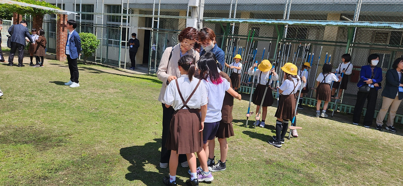 학교에 들어서자 체육 수업을 하는 아이들의 모습을 볼 수 있었다. 사실 이 학교는 오사카 도심에 있지만 시설은 굉장히 낡은 학교였다. 인솔하는 선생님의 말에 따르면 일본에 있는 대부분 학교 시설이 이 정도 수준이라고 한다. 우리나라 80~90년대 수준의 시설이라고 생각하면 될 것 같다.