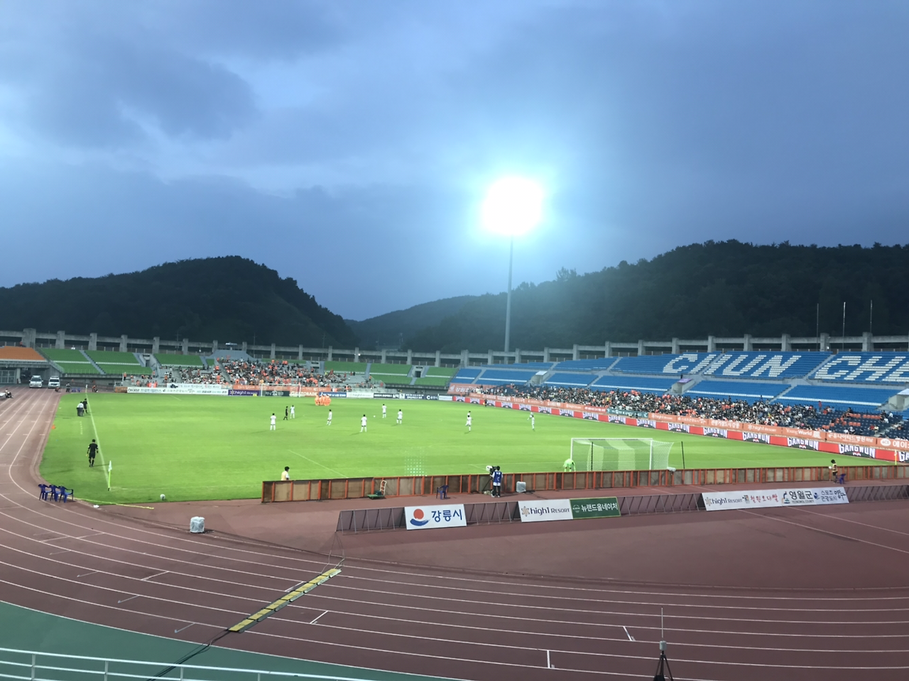 오후 5시, 우리는 좋아하는 팀의 유니폼을 입고, 이른 저녁을 먹은 후 서울춘천 고속도로를 올라탔습니다. 1시간을 조금 더 달려서 축구장에 도착했습니다. 강원과 전북의 경기였고, 우리는 원정팀 전북의 팬입니다. 저는 강원의 홈 석으로 티켓을 잘 못 구입해서, 다시 티켓을 구입했습니다. 그런데 횡재했습니다. '소방관+동반 1인 무료' 우리는 사천 원으로 입장했습니다. 생각보다 경기장에는 관객들이 가득 차 있습니다. 우리는 원 정석에 앉아서 열심히 응원했으나 원정팀이 2:1로 졌습니다. 시계를 보니 밤 9시 30분이 훌쩍 넘었고, 서둘러 차로 이동했습니다.