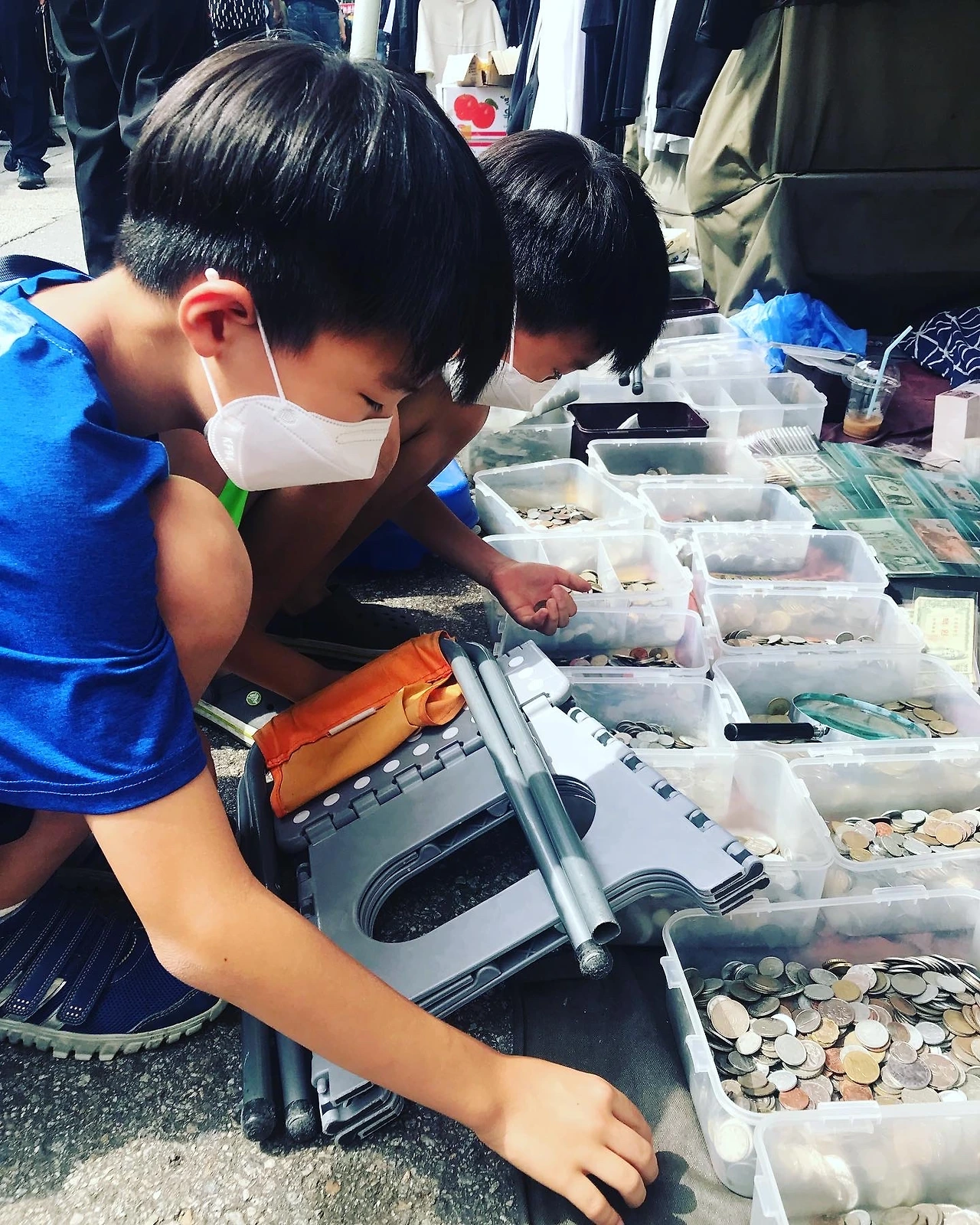 그리하여 온유를 제외한 우리는 차를 타고 동묘시장에 도착했다. 주차는 모두의 주차장에서 종일권으로 사천 원으로 미리 결제했다. 11시쯤 도착해서 이곳저곳을 구경했다. 아이들은 축구 유니폼이나 축구화를 찾았지만, 아이들 사이즈가 보이지 않았다.