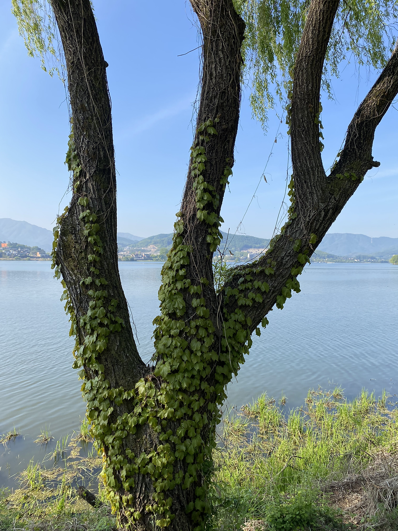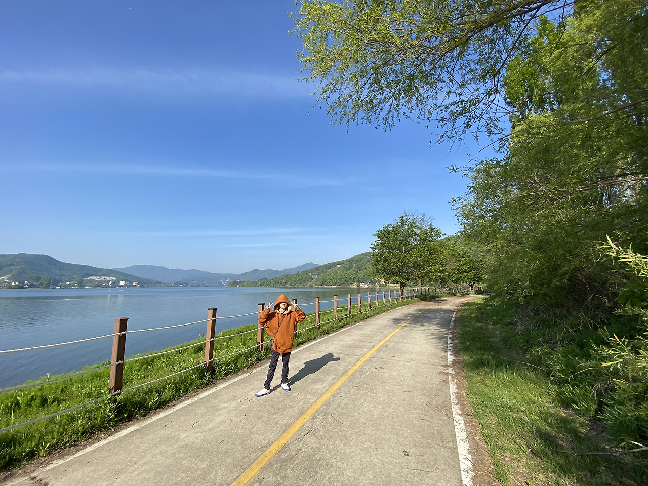 우리는 반대쪽으로 양서면으로 넘어가서 내가 전부터 걷고 싶었던 산책로에 도착했다. 산책로는 남한강을 낀 짧은 코스였다. 날씨도 바람도 나무도 모든 게 좋았다. 산책코스의 마지막 지점에서 누군가가 그림을 그리고 있었다. 그림이 얼마나 아름다웠는지 멀리서도 느껴졌다. 우리는 그림 그리는 작가에게 다가가 물었다.