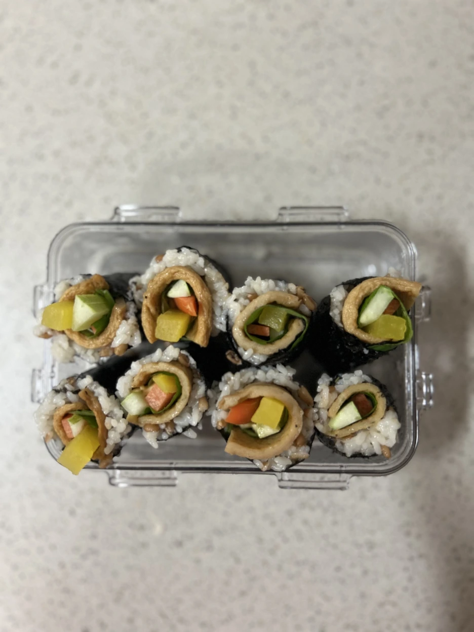 창피하지만 얼마 전에 아내가 만들어 놓은 김밥 재료로 만든 아기김밥을 자랑삼아 첨부해 본다. 아침에 '이 김밥을 말기 위해서 꽤 많은 시간이 들었다'는 것은 비밀이다.